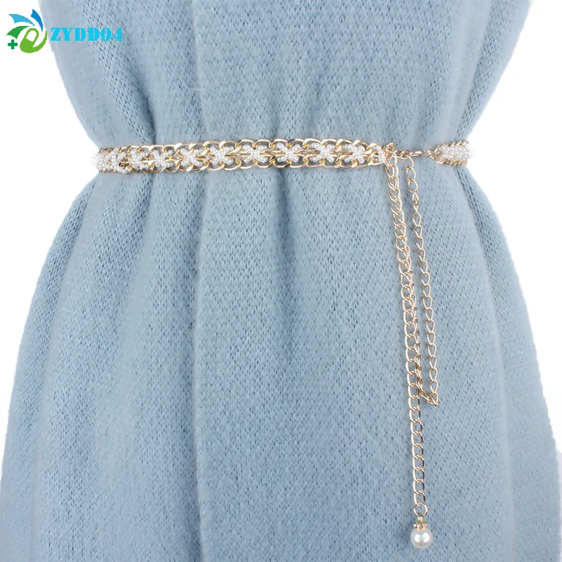 ● Ceinture en perles pour femmes, 1 pièce, élégante, chaîne de taille, boucle élastique, chaîne de perles, accessoires pour vêtements féminins |
