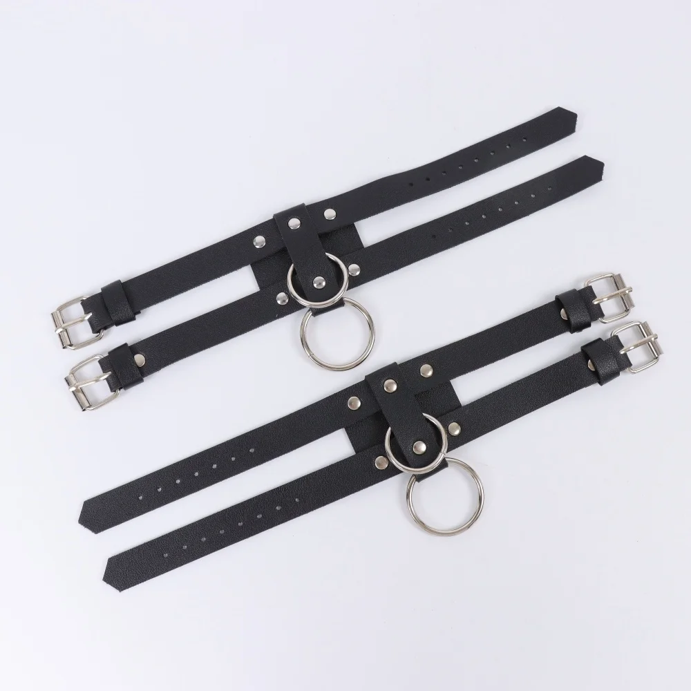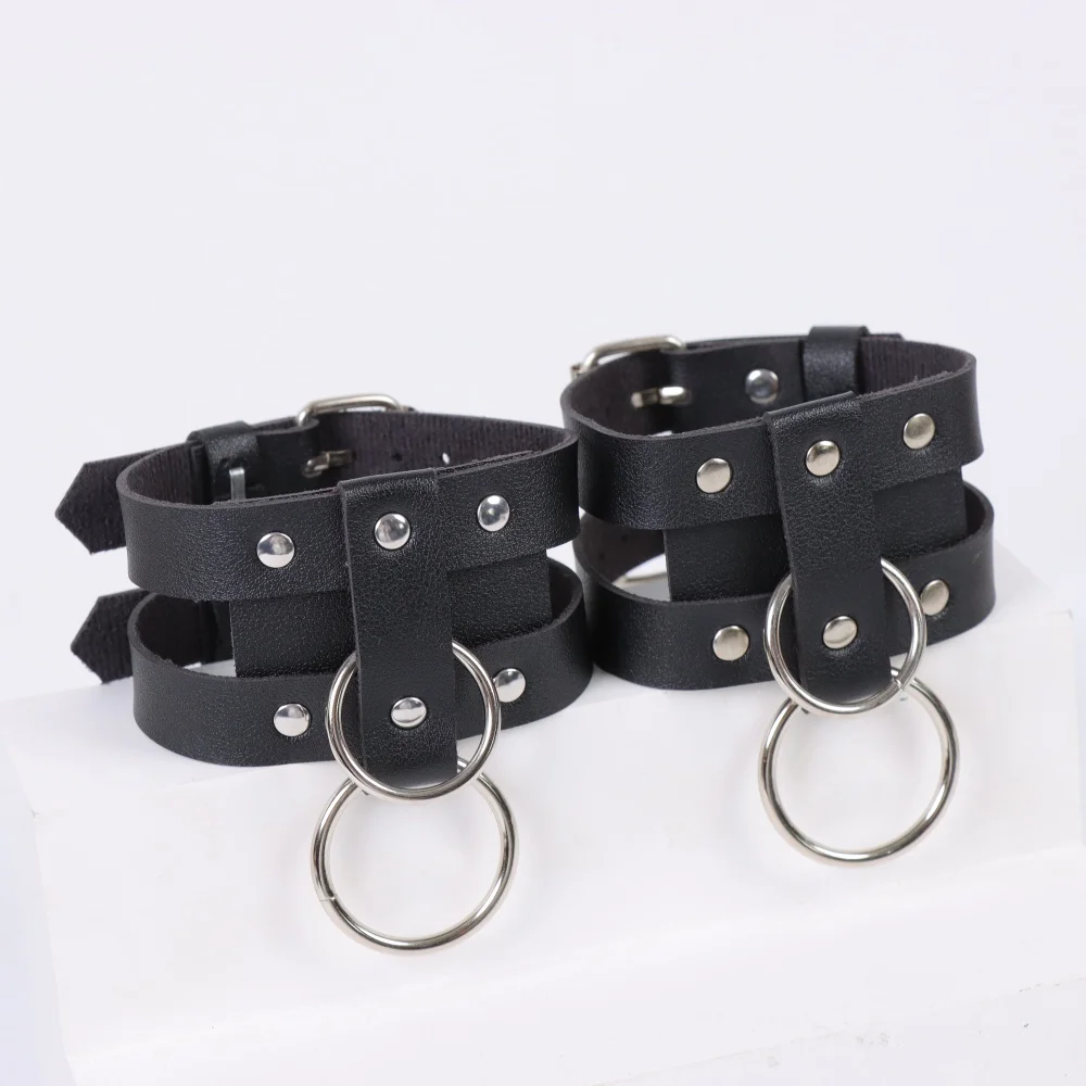 1 paire de ceinture de cheville ceinture de sécurité de cheville noire, Bracelets de jambe réglables avec anneaux manchette de cheville en cuir harnais de cheville en cuir