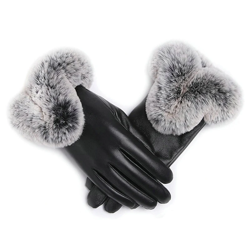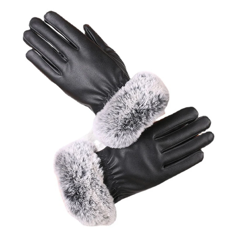1 paire de gants chauds d’hiver pour femmes, en cuir PU noir, pour automne et hiver, gants d’alpinisme chauds, cadeaux de noël