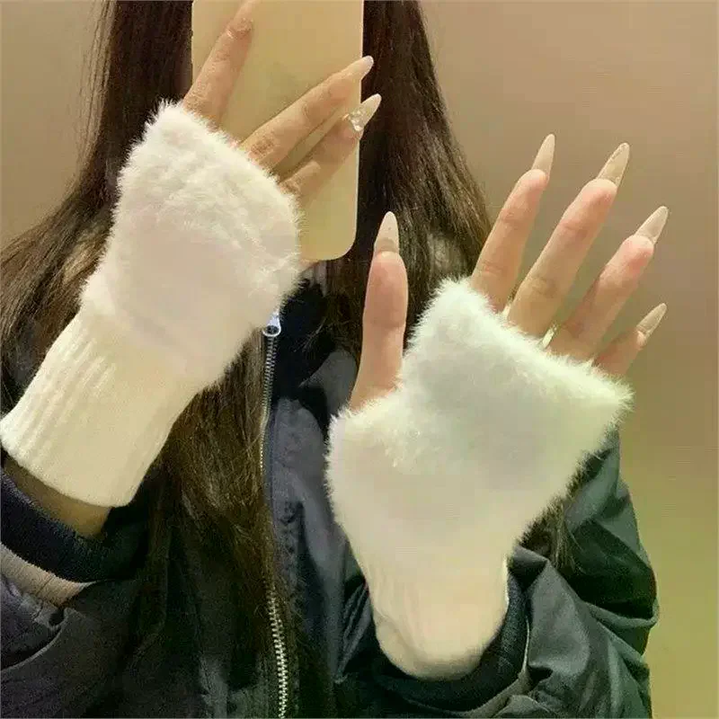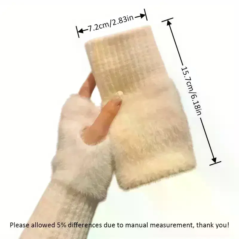 1 paire de gants demi-doigt chauds et résistants au froid pour femmes en automne et en hiver, polyvalents et en peluche, gants demi-doigt de bureau mignons |