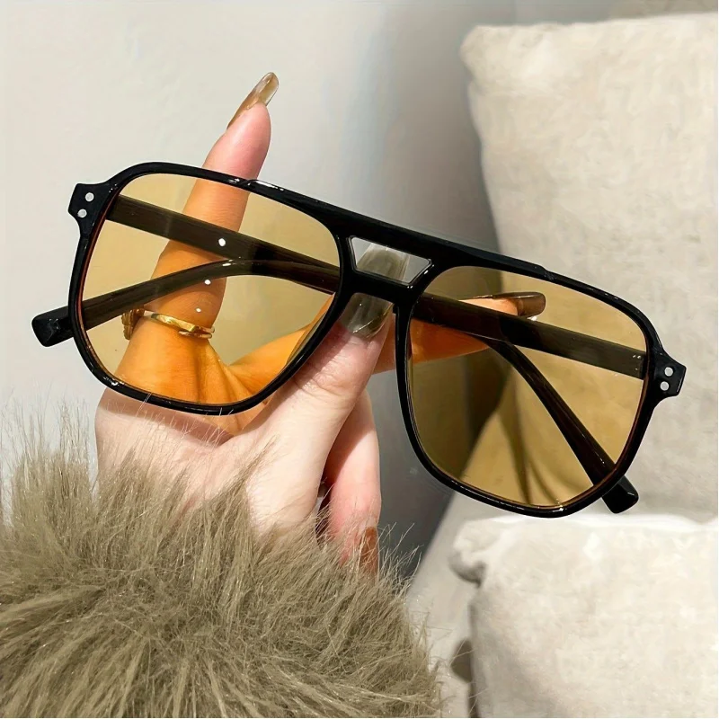 1 pièce de lunettes de soleil carrées simples à Double faisceau pour femmes, unisexe est un incontournable, adaptées à une variété d'occasions |