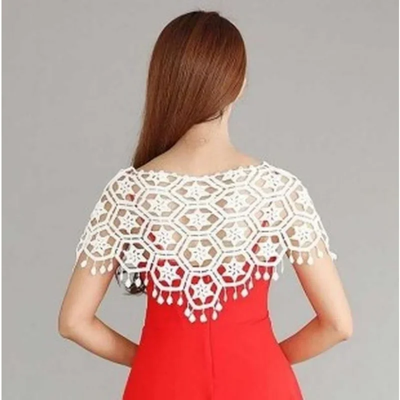 1 pièces foulard Hijab élégant dames châle mode gland dentelle écharpe femmes mode crochet creux fleur court petit gilet couverture |