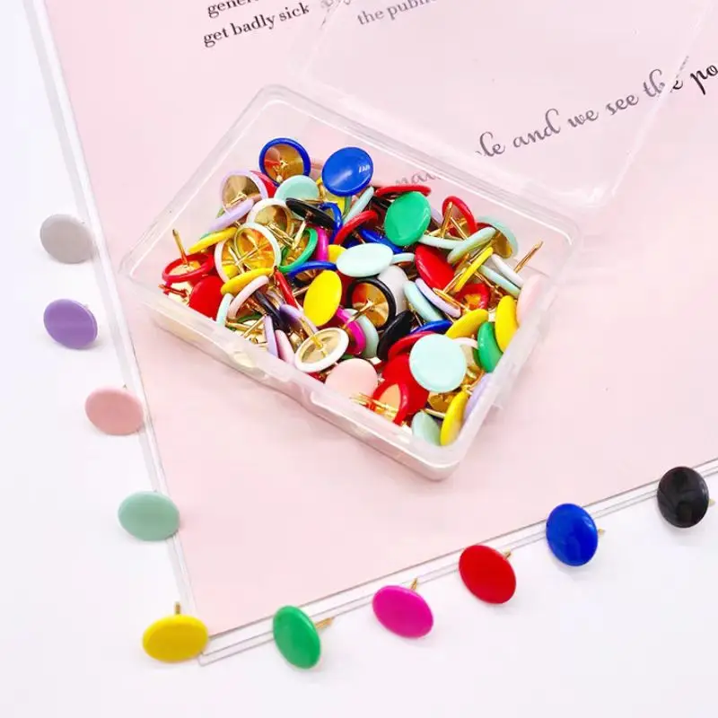 100 pièces couleur punaises décoratives multi fonctionnelles à tête plate punaises décoration murale punaises Photo broche bureau école |