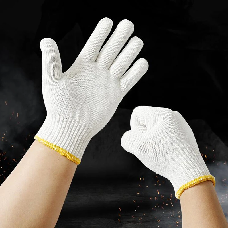 12 paires de gants résistants à l'usure en fil de coton blanc pour la réparation domestique-mitaines de travail hygiéniques et durables |