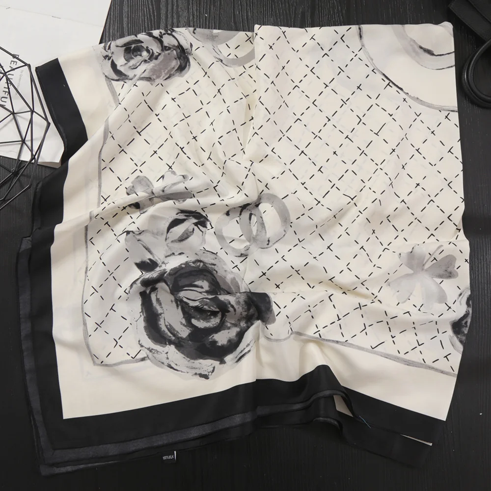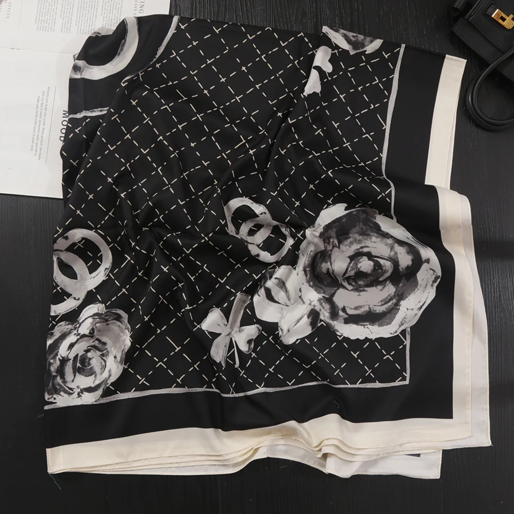 130*130 cm femmes printemps automne mode Multi fonction Foulard Plaid imprimé Hijab imité soie concepteur carré écharpe |