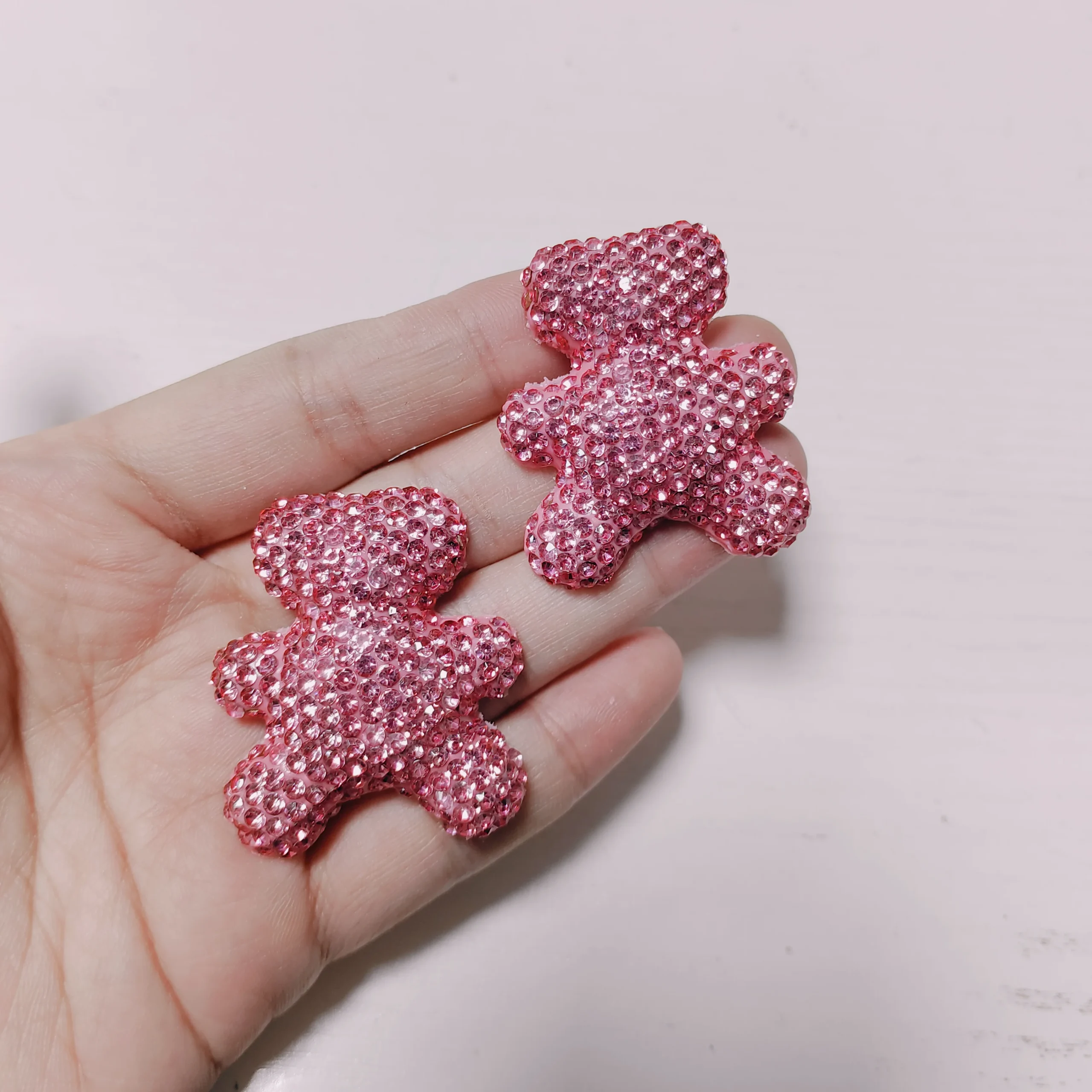 2 pièces brillant plein strass ours arc creux lèvres rouges résine décorations 3d bricolage indésirable coque de téléphone miroir casque épingle à cheveux accessoires