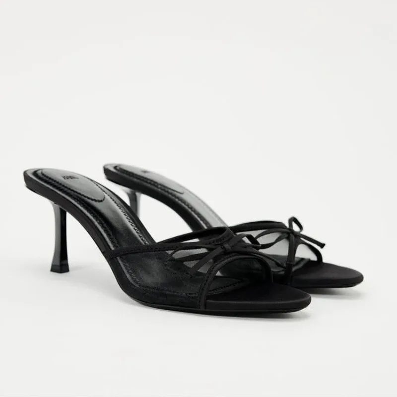 2025 élégant talons hauts sandales femmes mince bout ouvert pantoufles été léger dentelle robe sandales diapositives Zapatos De Mujer 35-42 |
