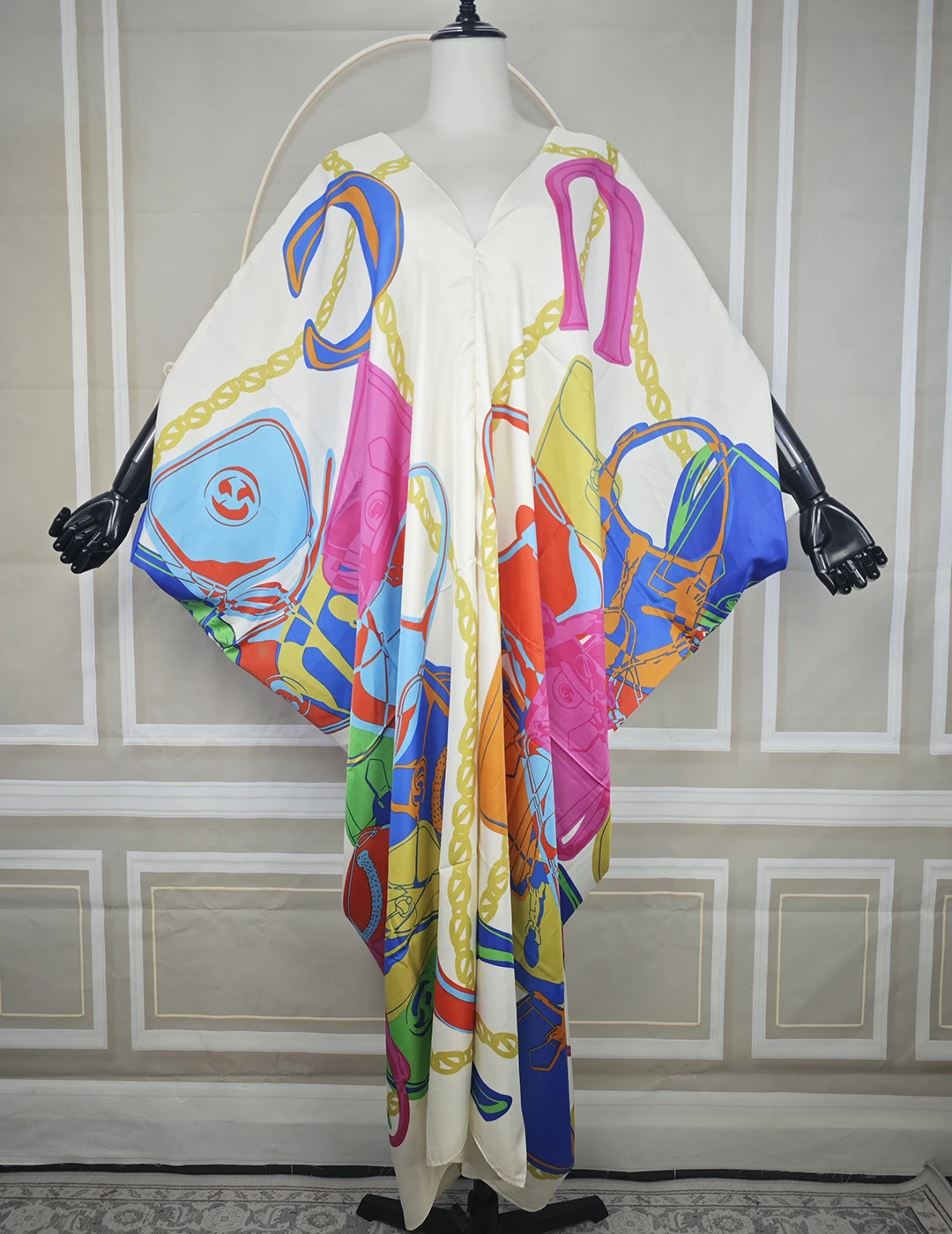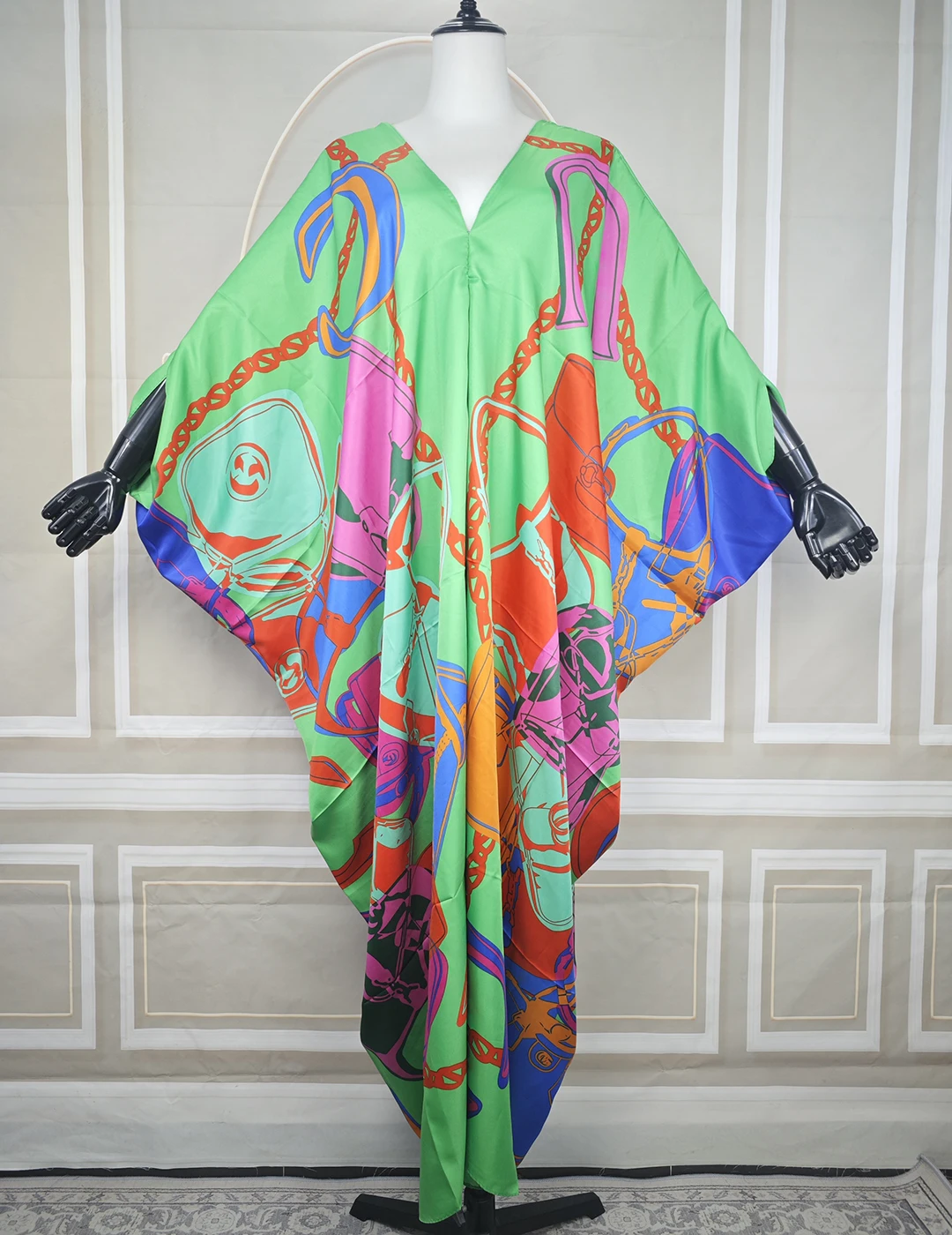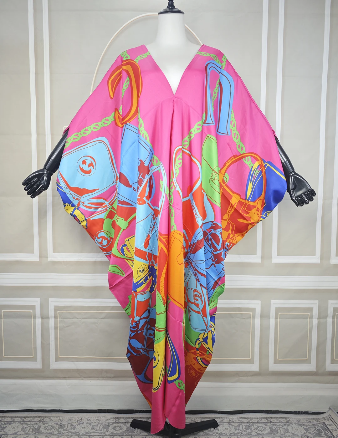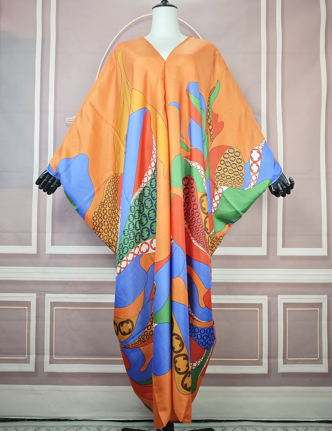 2025 Femme africaine nouvelle mode Abaya femmes musulmanes Ramadan Streetwear BouBou élégant dame soie col en v caftan robe Boho vêtements |