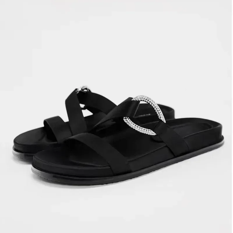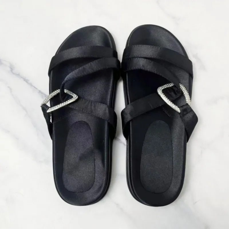 2025 noir femme pantoufles plates été mode boucle sangle nouveau décontracté en plein air plate-forme chaussures de plage bout ouvert femme diapositives