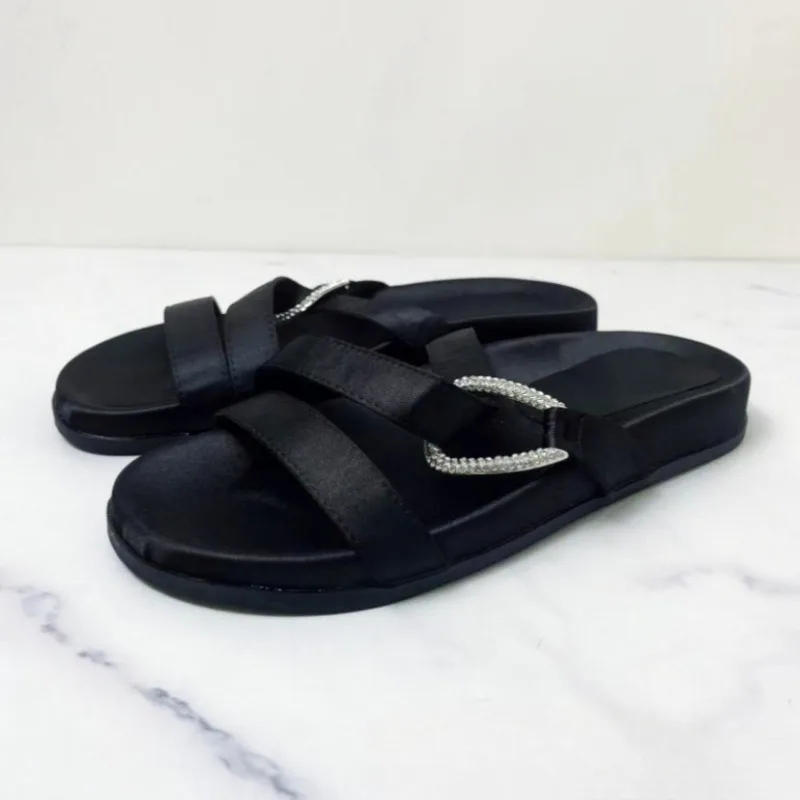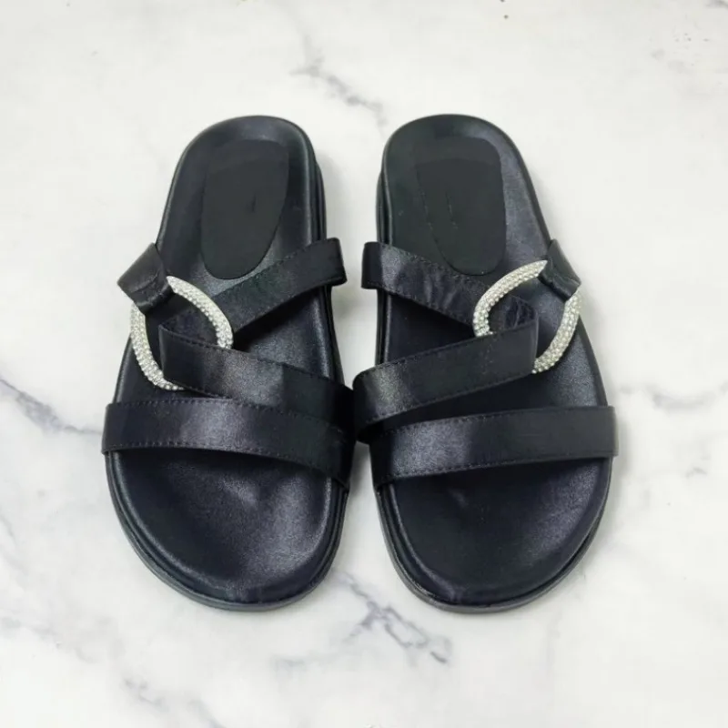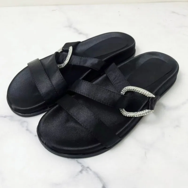 2025 noir femme pantoufles plates été mode boucle sangle nouveau décontracté en plein air plate-forme chaussures de plage bout ouvert femme diapositives |