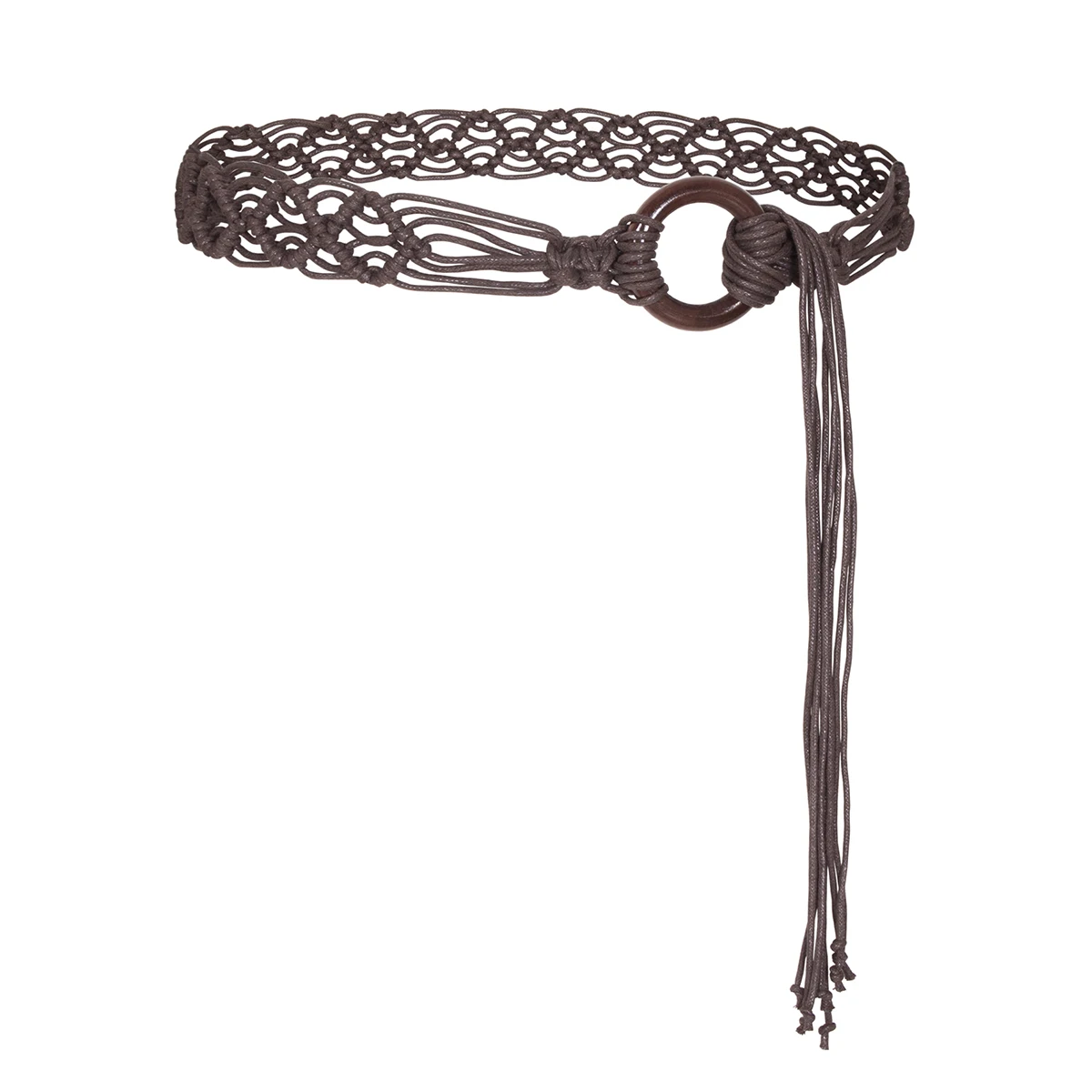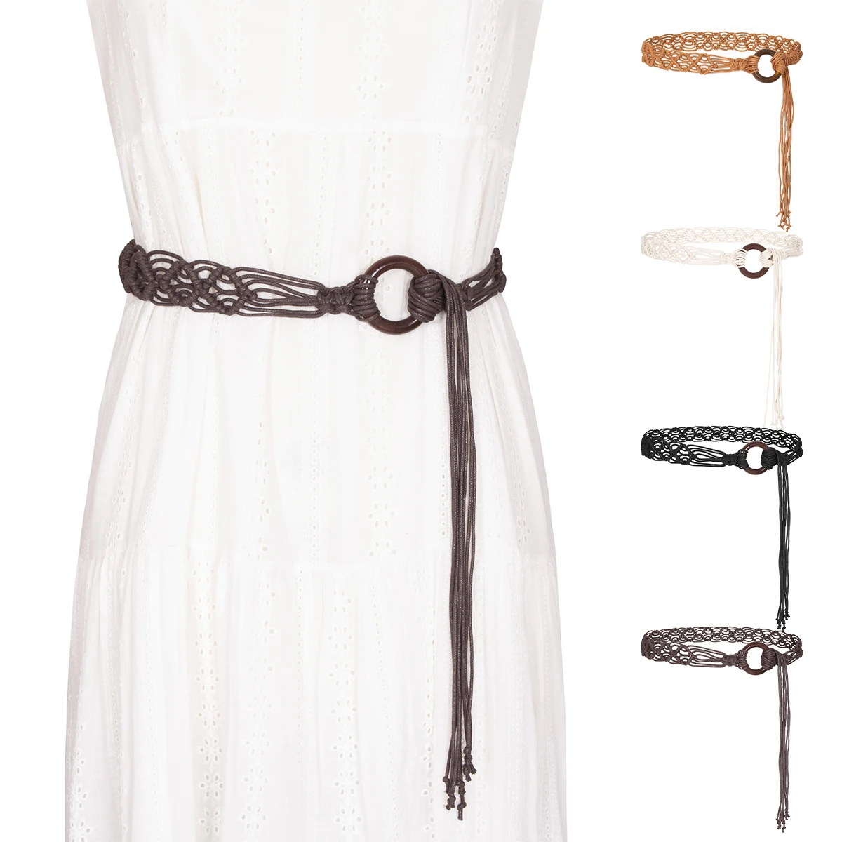2025 nouveau bohème macramé tressé ceinture noir chameau Beige longue corde tissé noeud Style ethnique à la main vacances femmes ceintures BZ0003