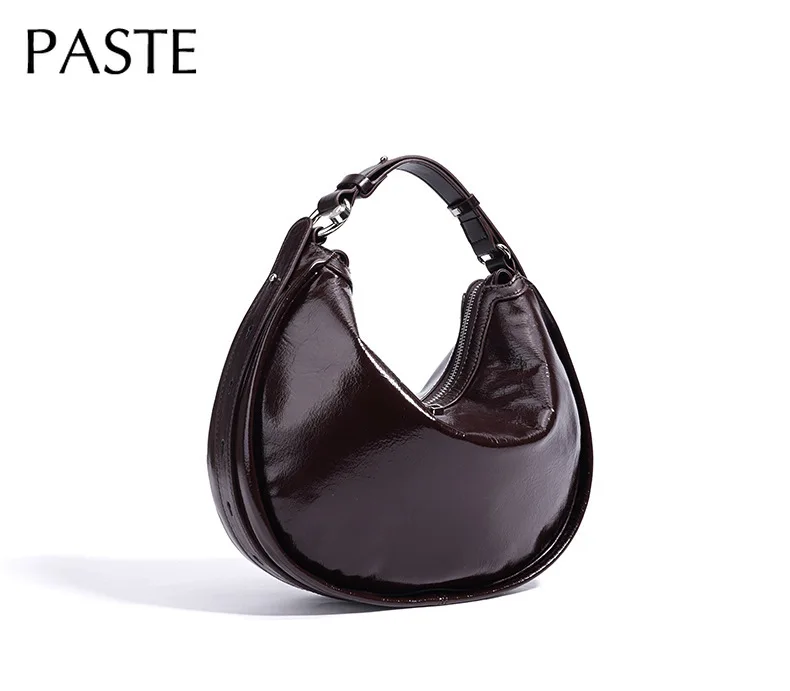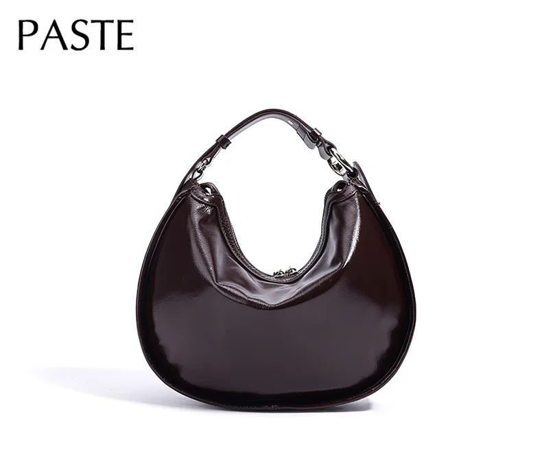 2025 nouveau Design Chic couleur cerise demi-lune ronde femmes fourre-tout brillant en cuir de vache femme sac à bandoulière haut de gamme sac à main |