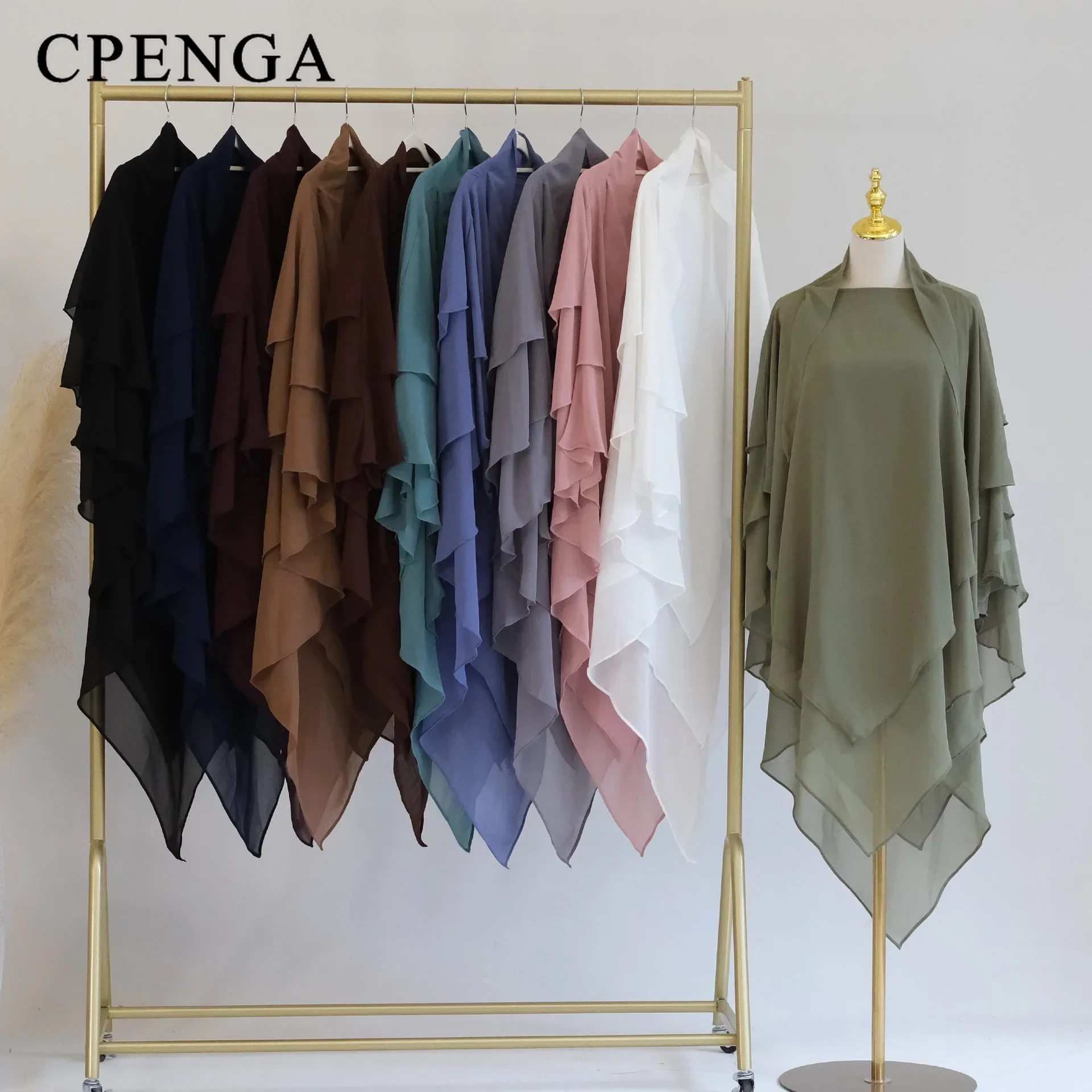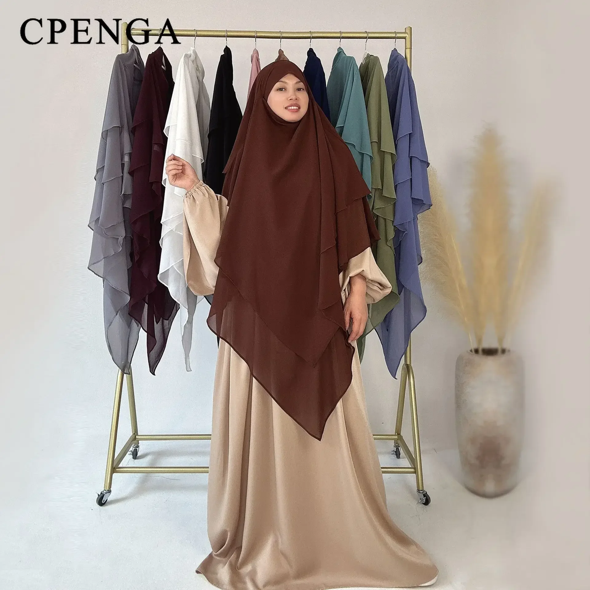 2025 nouveau plaine Hijab femmes musulmanes modeste Khimar été en mousseline de soie solide 3 couches Turban Femme dubaï turquie Hijabs Eid Islam vêtements |