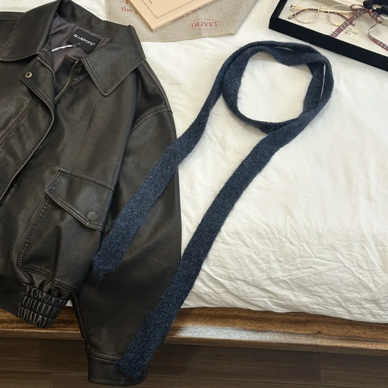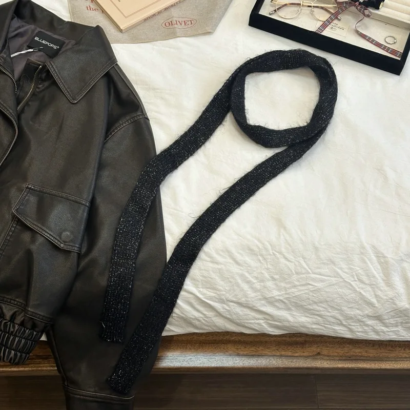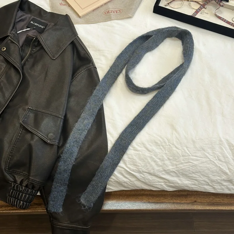 2025 nouveau Style à la mode mince écharpe empilable longue écharpe chaude filles portent une écharpe en laine coréenne bande étroite écharpe |