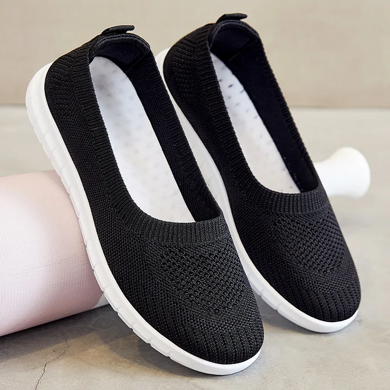 2025 printemps été respirant tricoté chaussures plates pour femmes confortable sans lacet maman chaussures femme sans lacet antidérapant baskets décontractées femme