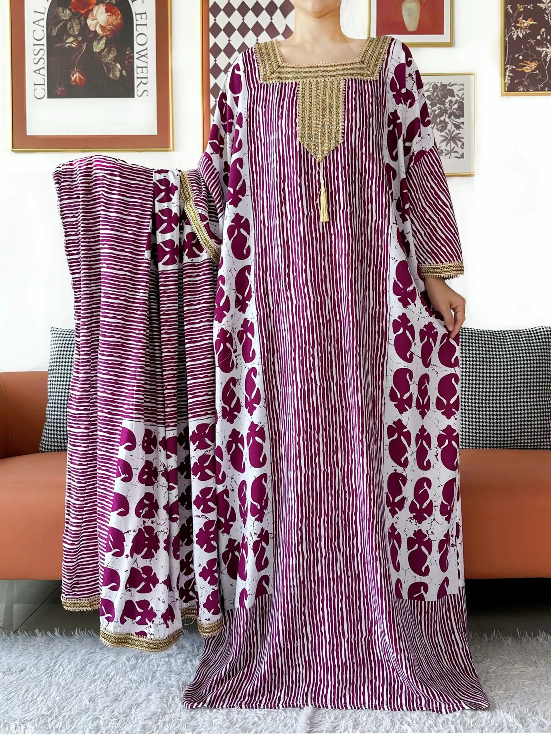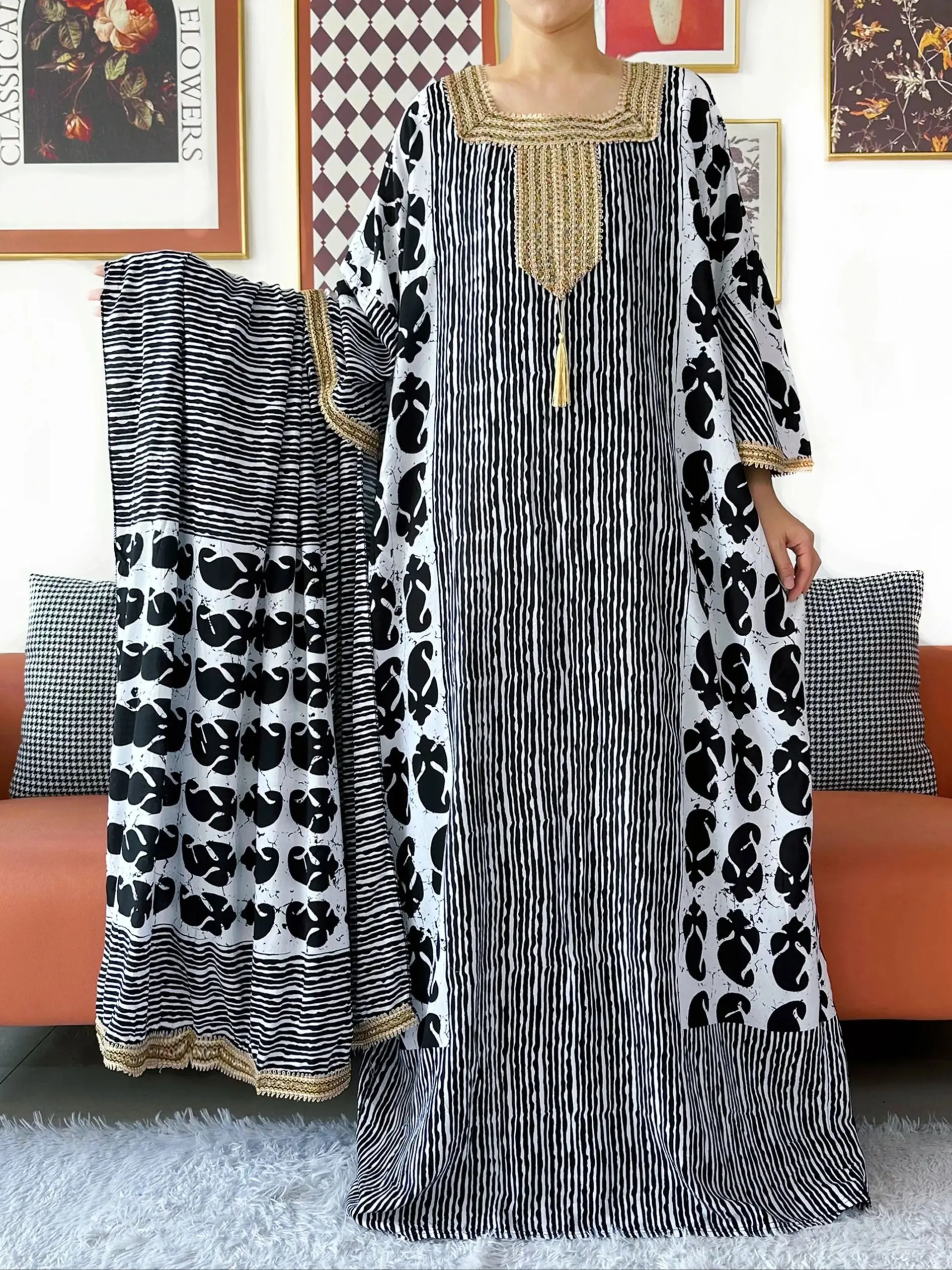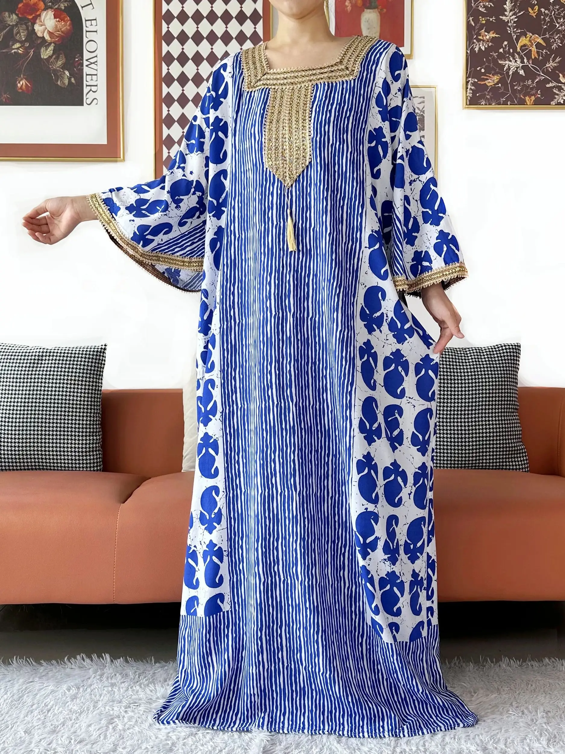 2025 Robe Abaya élégante manches chauve-souris épaules dénudées caftan coton femmes ample Abaya Boho robe Maxi tenue décontractée robes africaines |