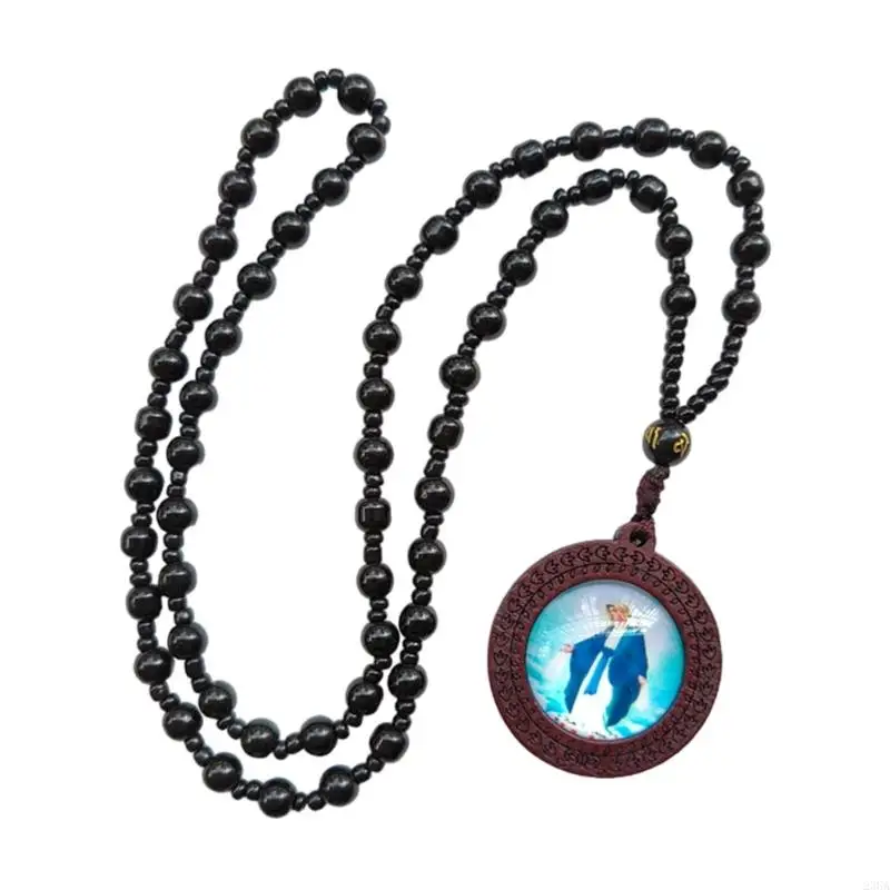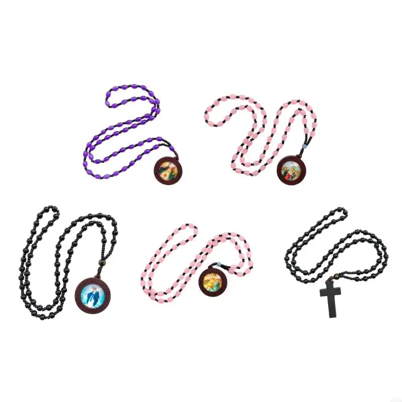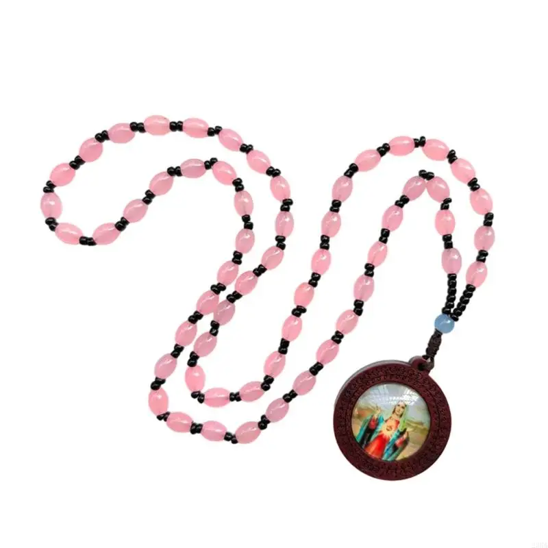 23GA Collier perles prière chrétienne Colliers chapelet faits à main avec des perles verre Pendent pour les