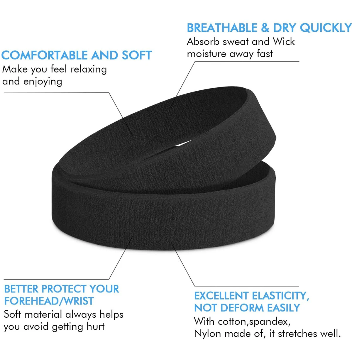 3 bandeaux de sport résistants à la transpiration pour hommes et femmes – bandeau anti-humidité pour le tennis, le basket-ball, la course à pied, la salle de sport, l'entraînement |