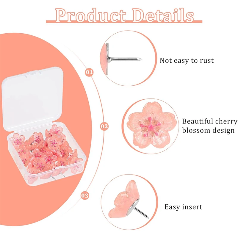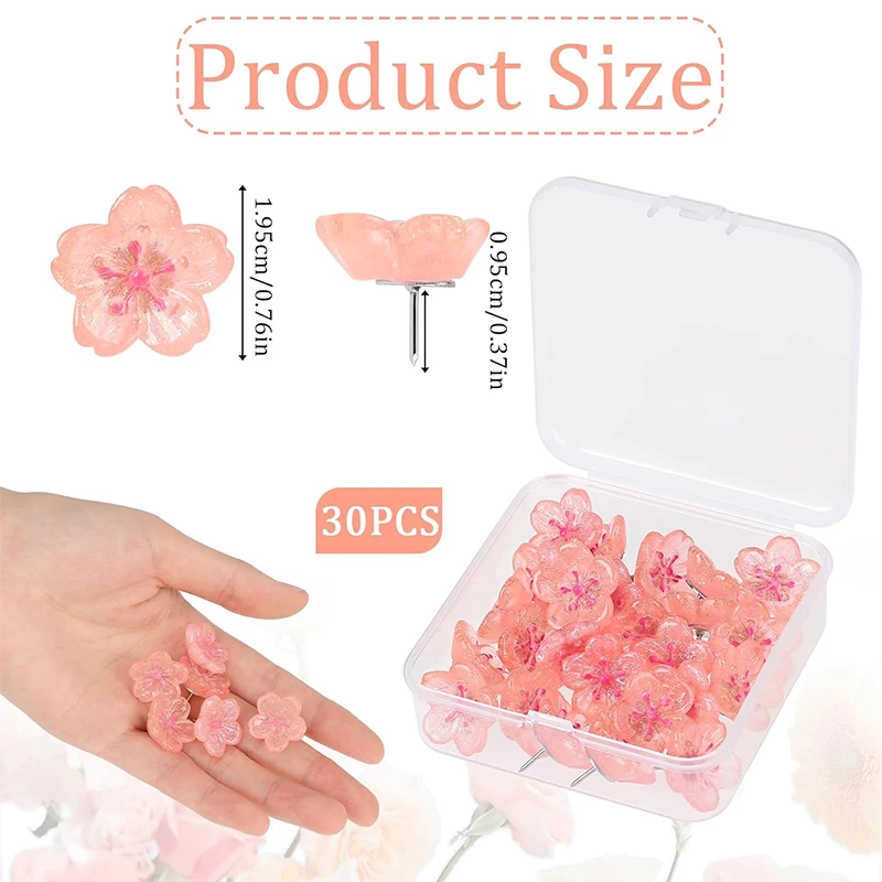 30 pièces/boîte fleurs de cerisier roses punaises résine paillettes fleur punaises punaises décoratives accessoires de papeterie de bureau |