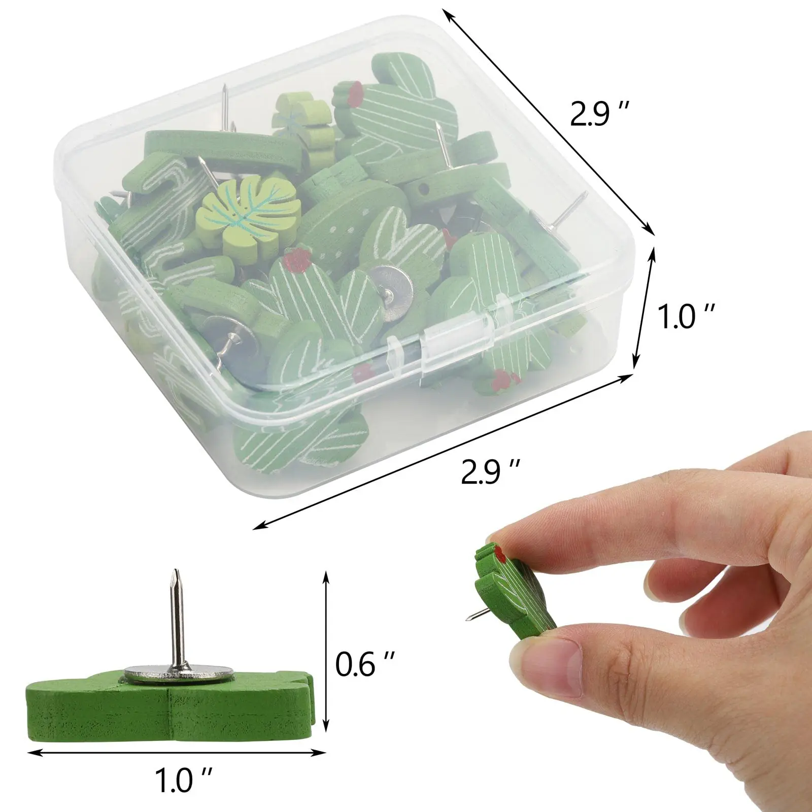 30 pièces/boîte punaises en bois mignon feuille de palmier punaise Cactus punaises décoratives pour panneau de liège Photos cartes murales