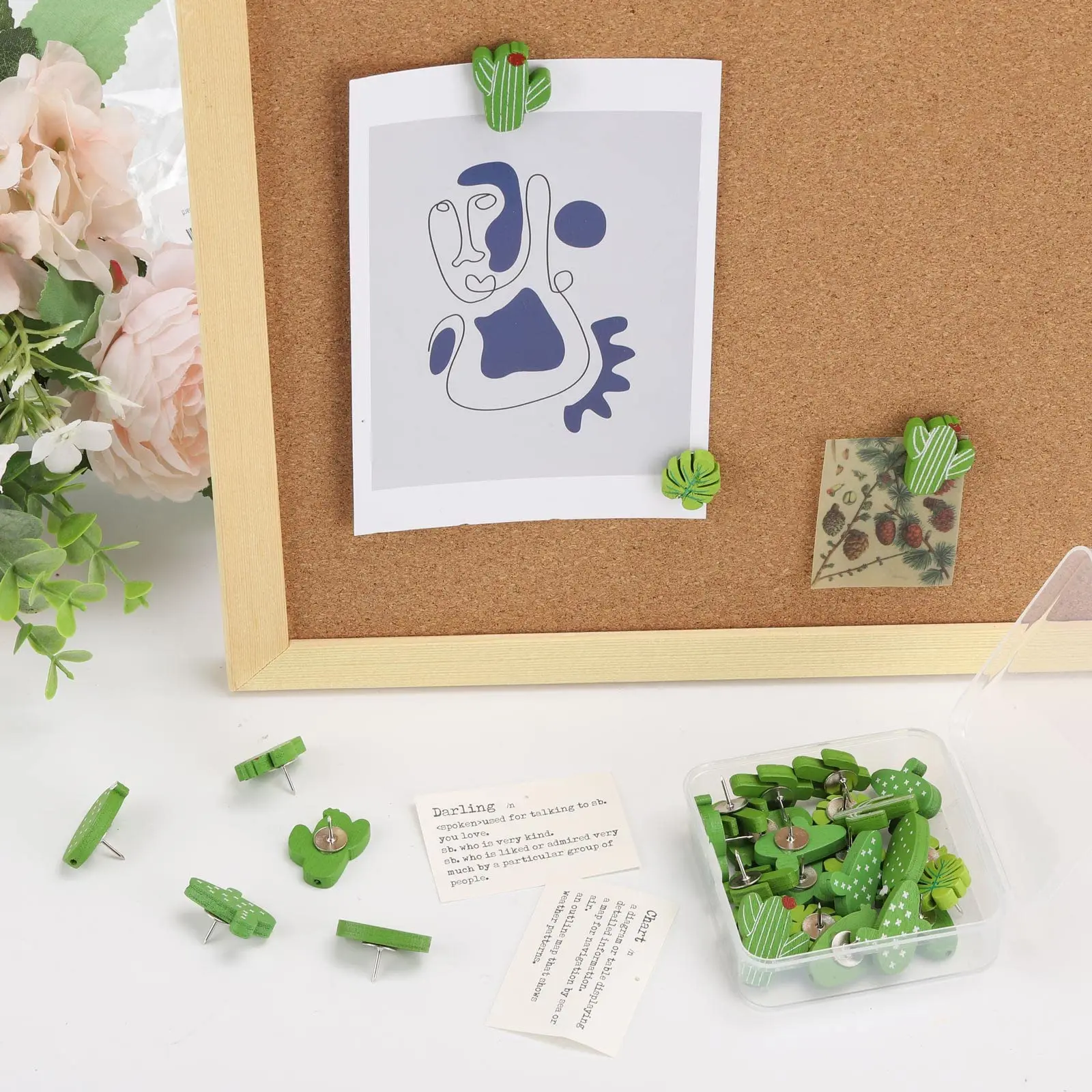 30 pièces/boîte punaises en bois mignon feuille de palmier punaise Cactus punaises décoratives pour panneau de liège Photos cartes murales |