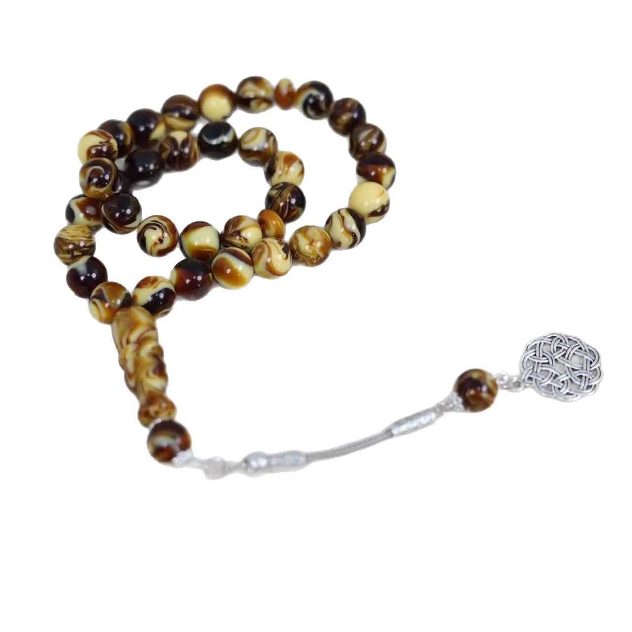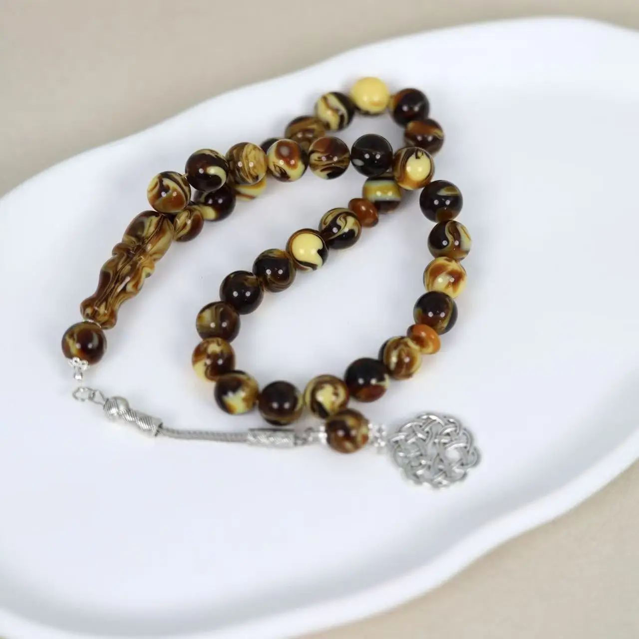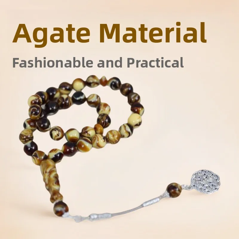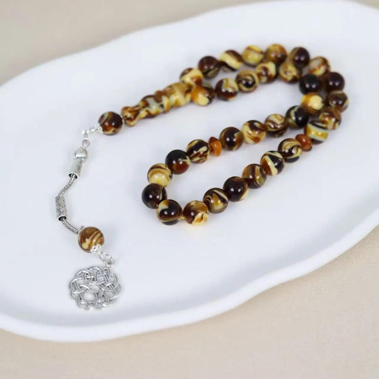 33 perles de prière musulmanes ambre de 12 mm, cadeaux de festival de prière quotidienne, artisanat en résine bohème à la mode poli pour les couples…