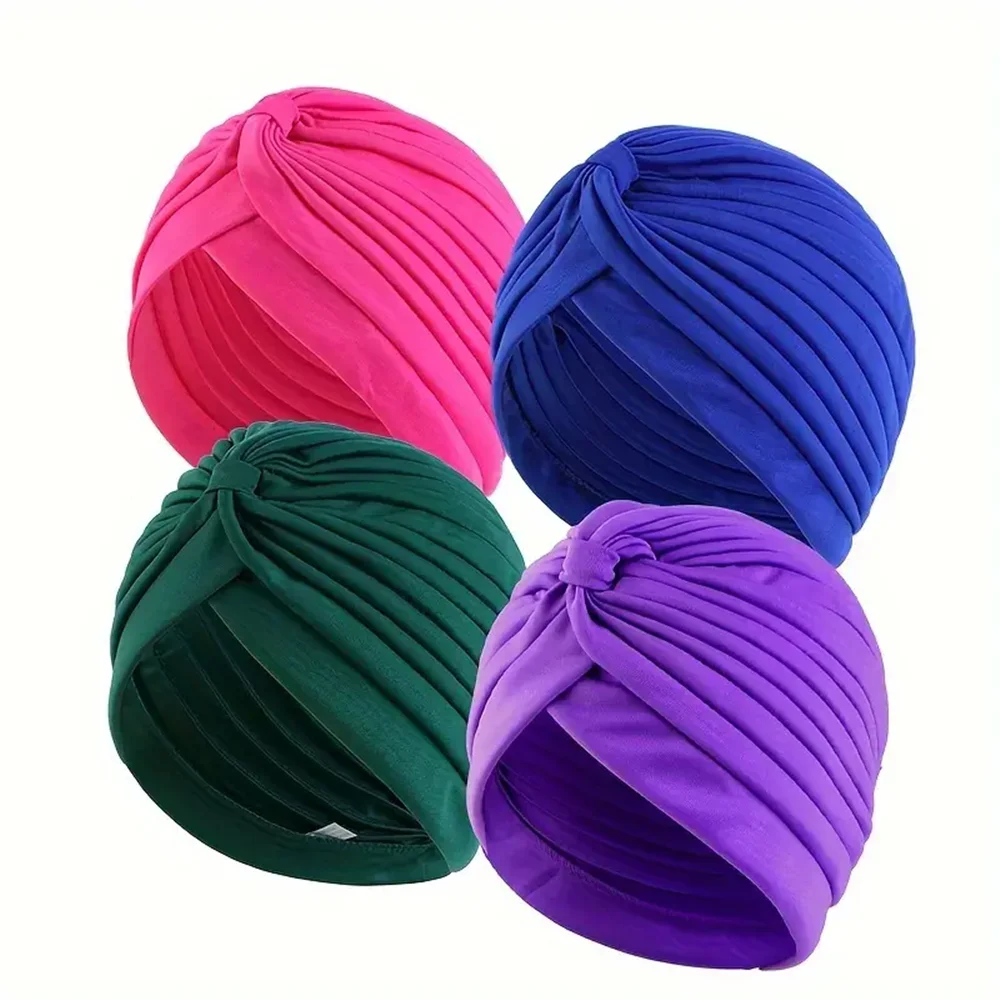 4 pièces/ensemble couleur unie Turban casquette élastique Bonnet foulard femmes chimio chapeaux décontracté plissé tête enveloppement