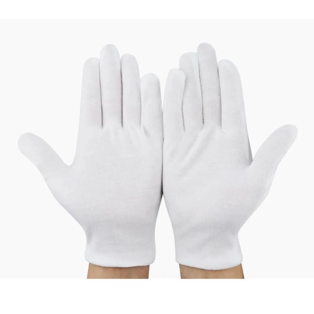 5 paires de gants en coton blanc doigt complet hommes femmes serveurs/pilotes/bijoux/travailleurs mitaines gants d'absorption de la sueur gants de protection des mains |