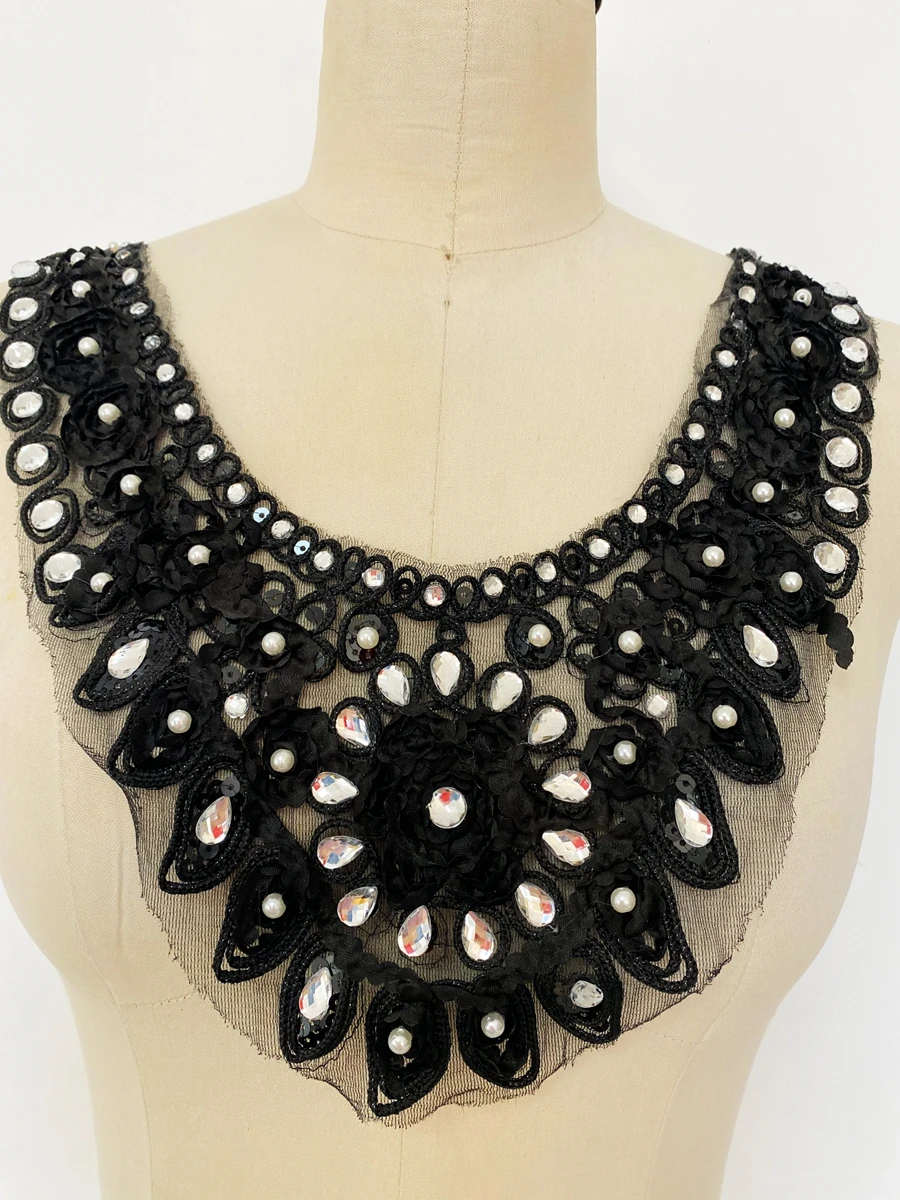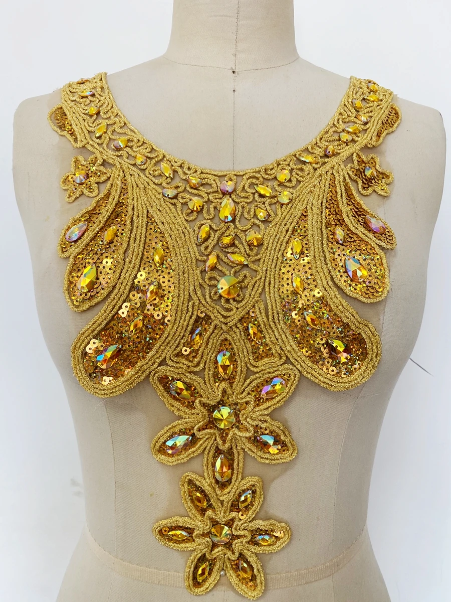 7 Style National de luxe perlé cristal diamant matériel col rond appliqué vêtements décoration musulman arabe robe accessoires |