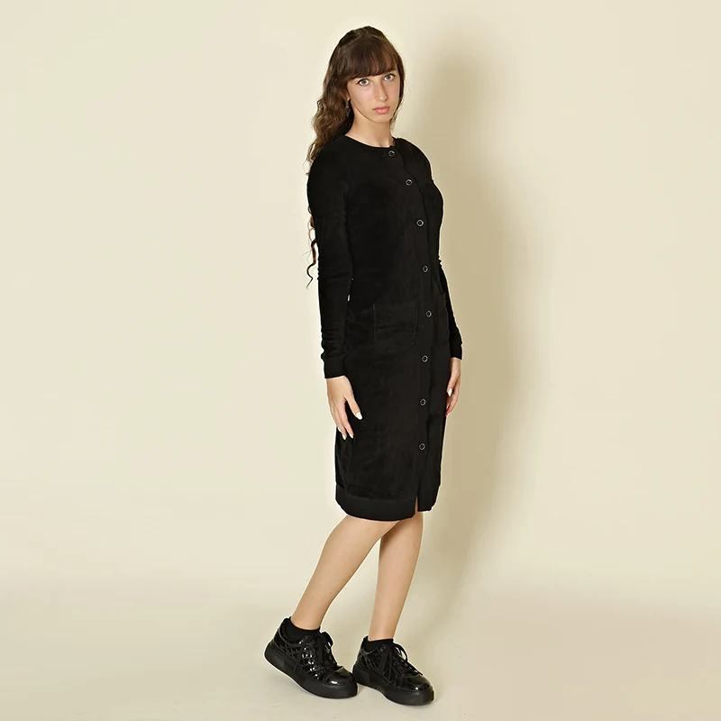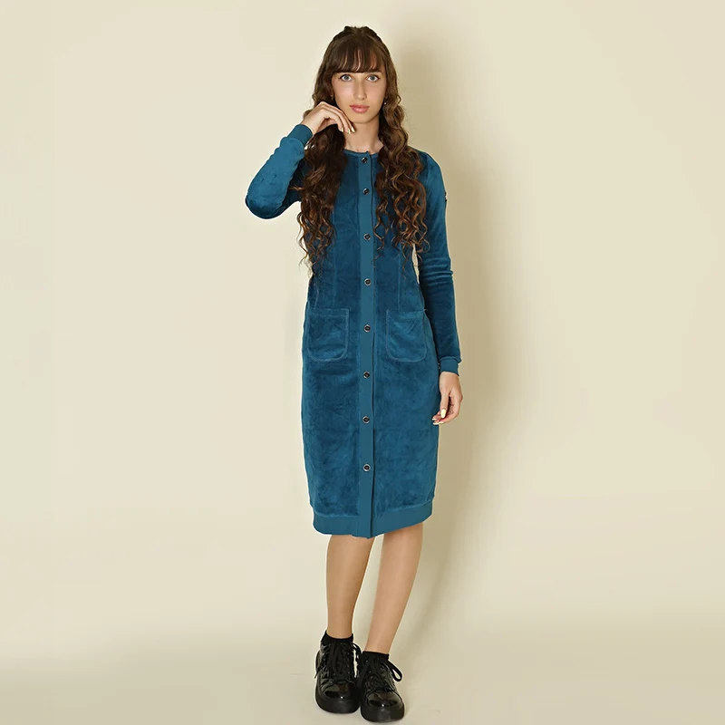 AA-femmes robe automne manches longues velours cardigan femmes col rond devant boutons ouverture avec deux poches taille XS-XXL |