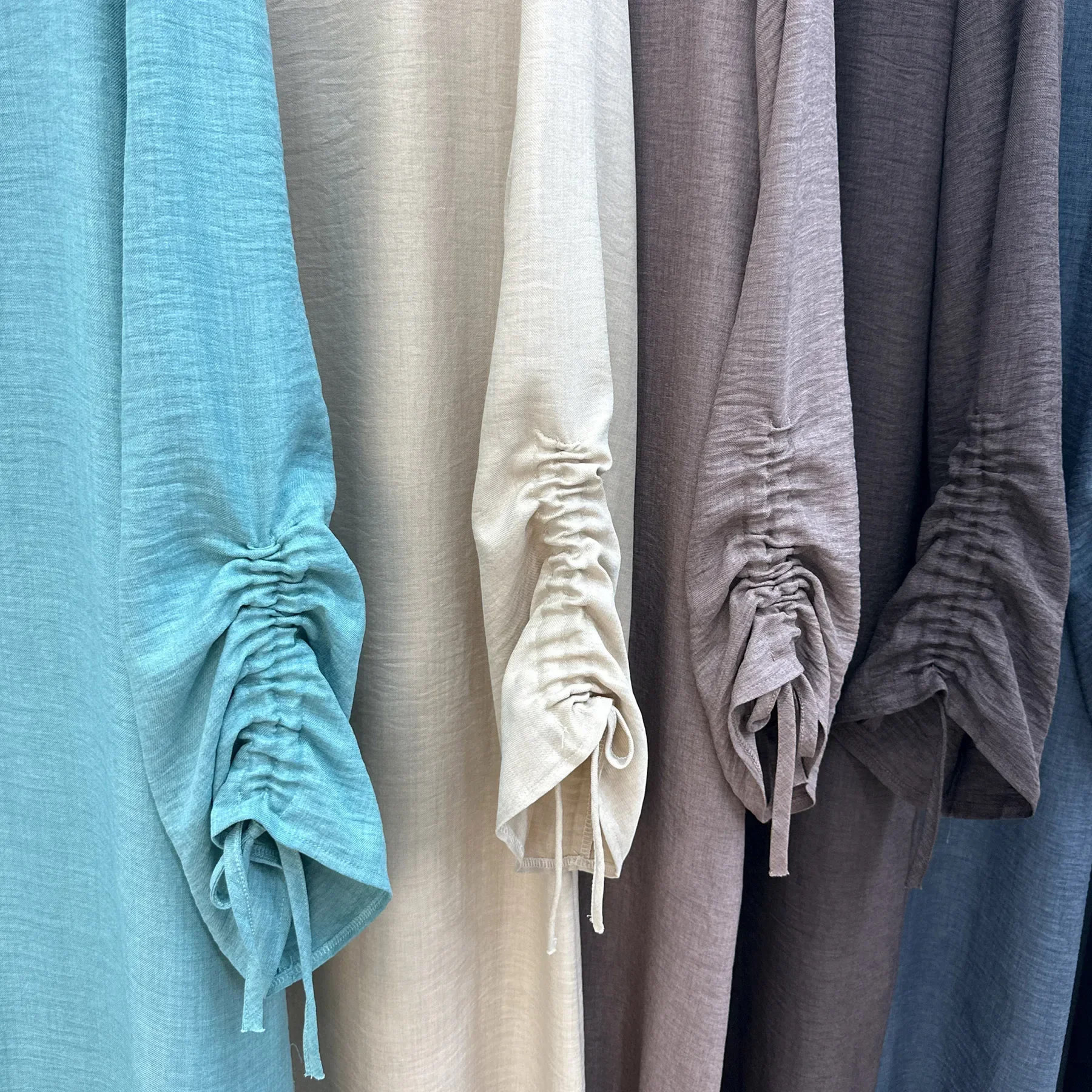 Abaya à manches froncées pour femmes, Abaya fermée, robe musulmane turque, tissu froissé fin et ample, vêtements islamiques, caftan modeste |