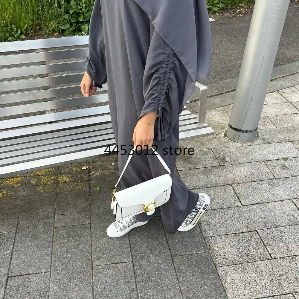 Abaya à manches froncées pour femmes, Abaya fermée, robe musulmane turque, tissu froissé fin et ample, vêtements islamiques, caftan modeste