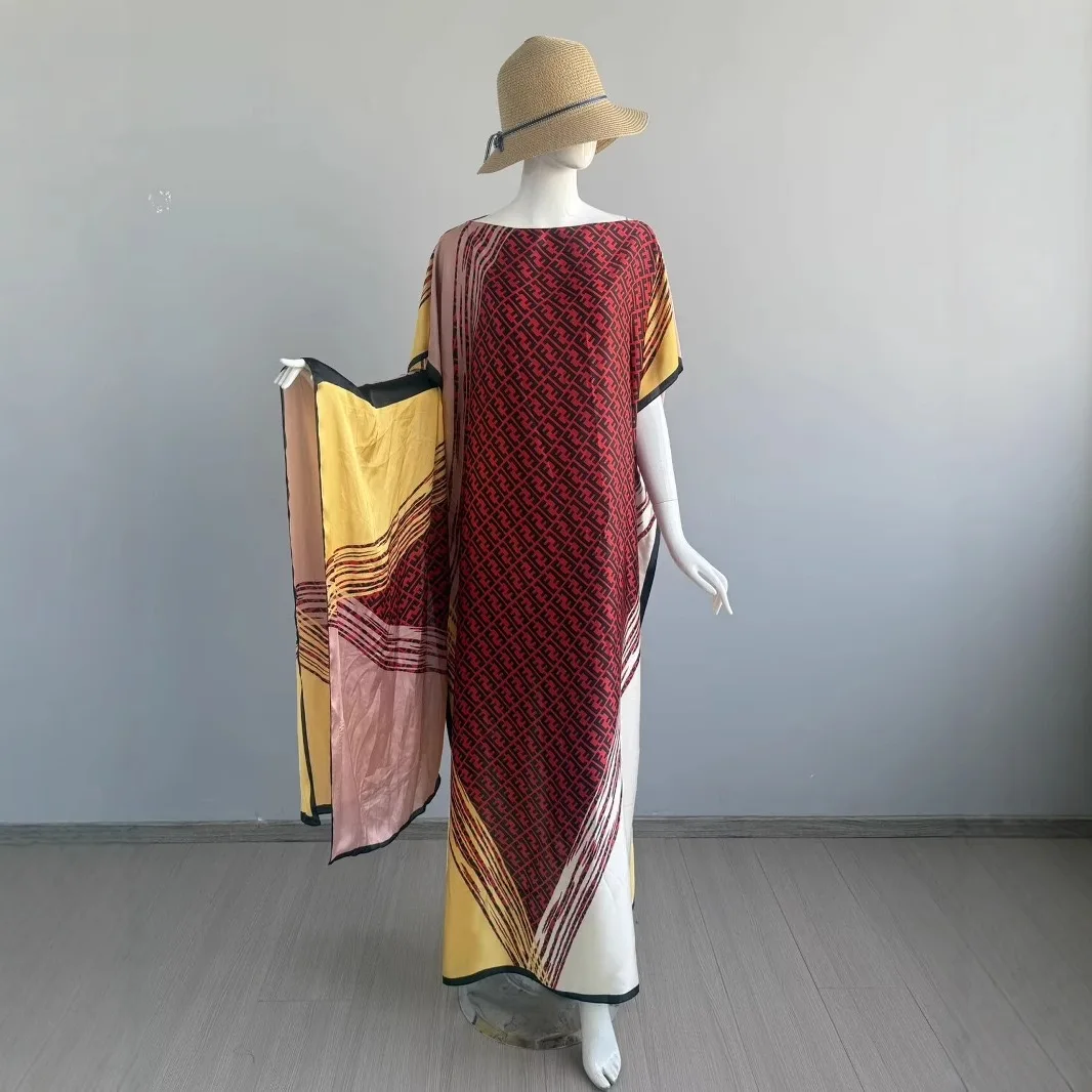 WINYI-Abaya pour femmes musulmanes, robe africaine dubaï, col ras du cou, kaftan imprimé, robe maxi élégante |