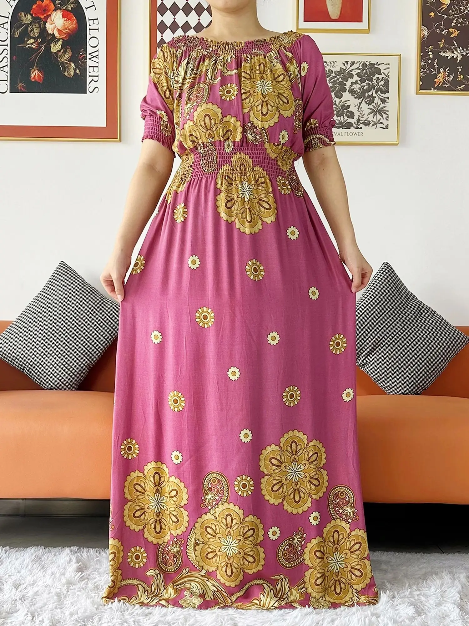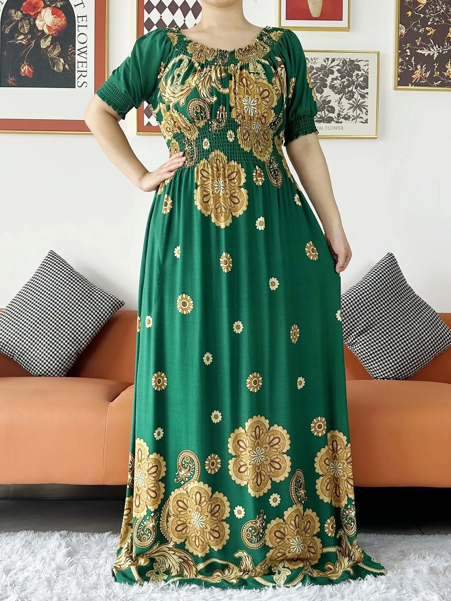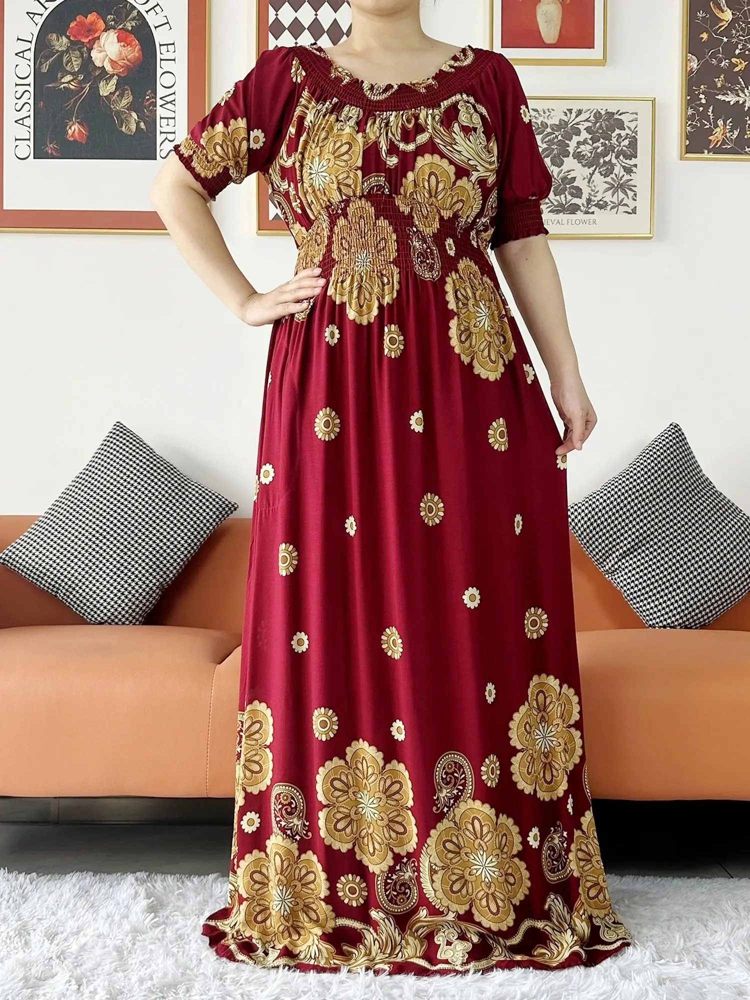 Abaya Dashiki à manches courtes pour femmes, robe maxi à imprimé floral africain, nouvelle collection été |