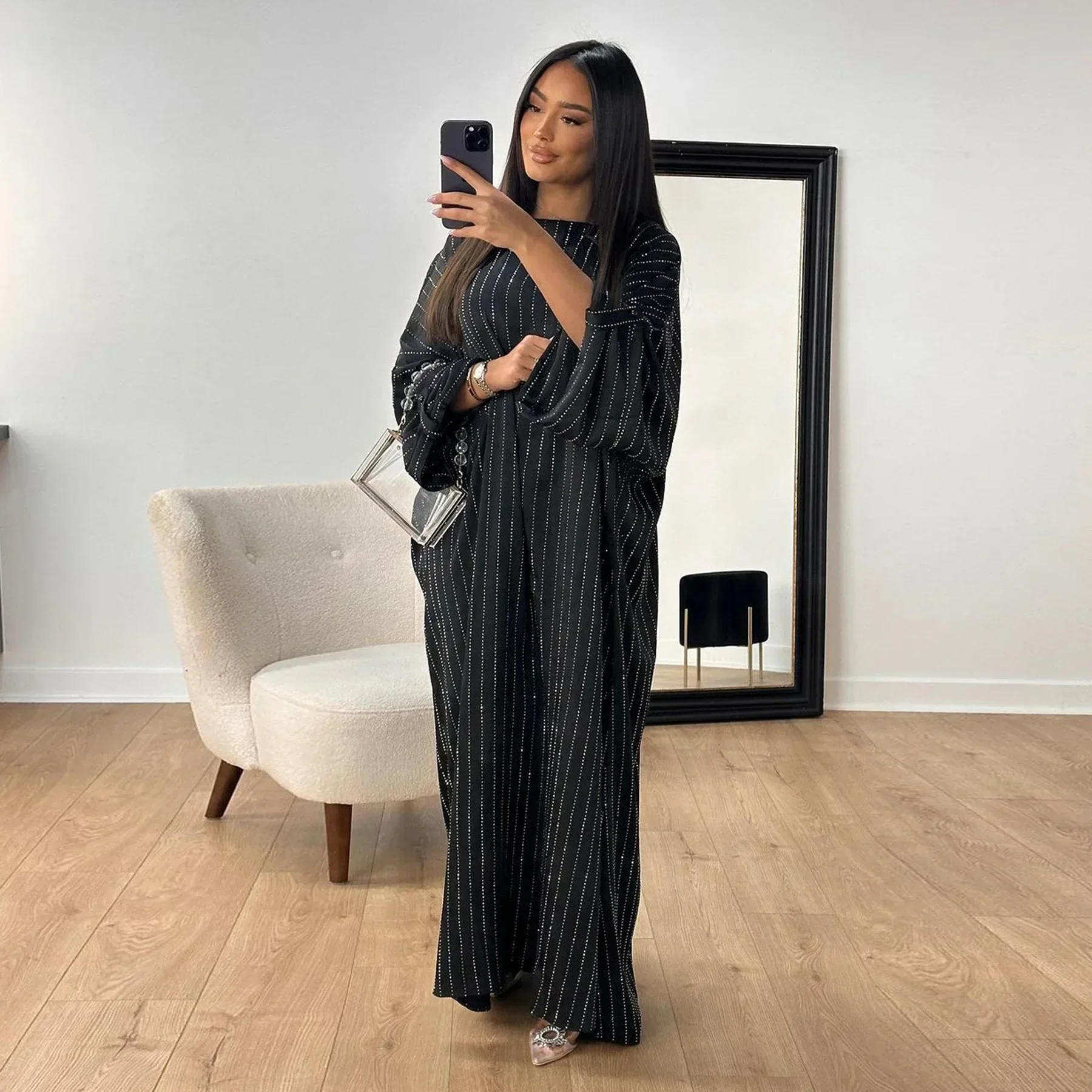 Abaya en satin à rayures scintillantes pour femmes, robe de soirée musulmane de luxe, abayas turcs, vêtements islamiques, caftan de Dubaï |