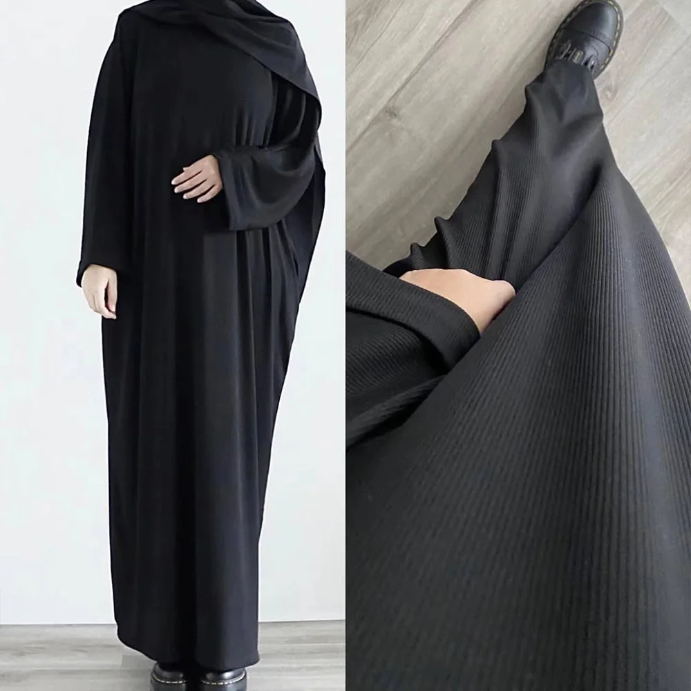 Abaya en tricot côtelé pour femmes musulmanes, Hijab décontracté, Robe, Islam, Dubaï, Turquie, Tenue modeste, Ramadan, Eid, Kaftan, Hijine-y, Vêtements d’automne et d’hiver