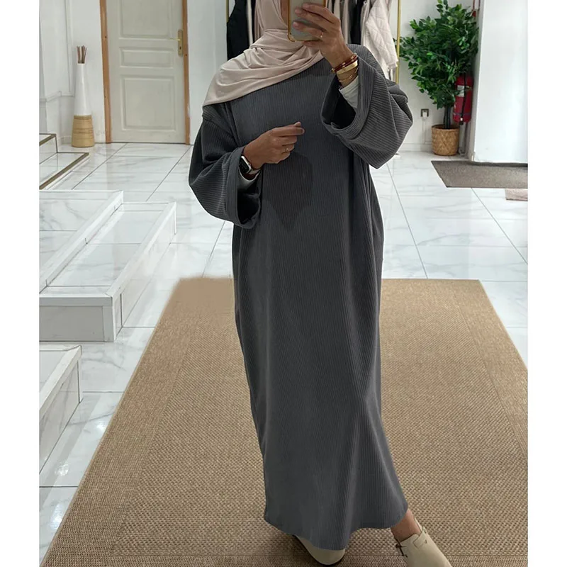 Abaya en velours côtelé avec poche latérale, vêtements islamiques épais et chauds pour Ramadan, robe modeste à manches longues pour femmes musulmanes de haute qualité, hiver