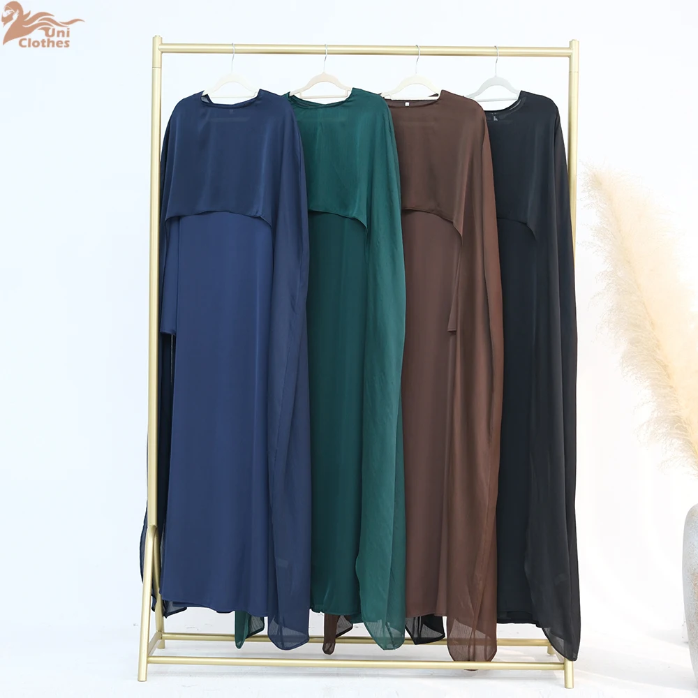 Abaya-Ensemble musulman modeste en satin pour femmes, robes africaines pour femmes, robe éducative, caftan marocain, Ramadan, 2 pièces |