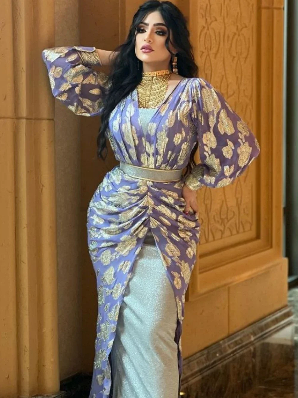 Abaya hanche étreinte dorure Robe de soirée personnalisé élégant Sexy danse Robe de soirée caftan élégant femmes Robe musulmane expédition rapide |