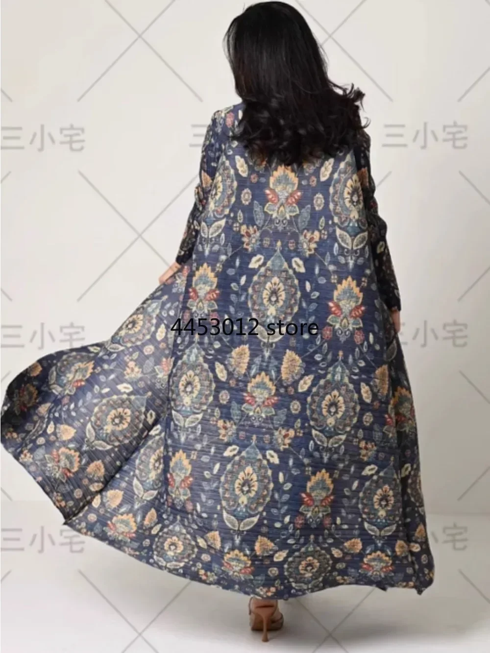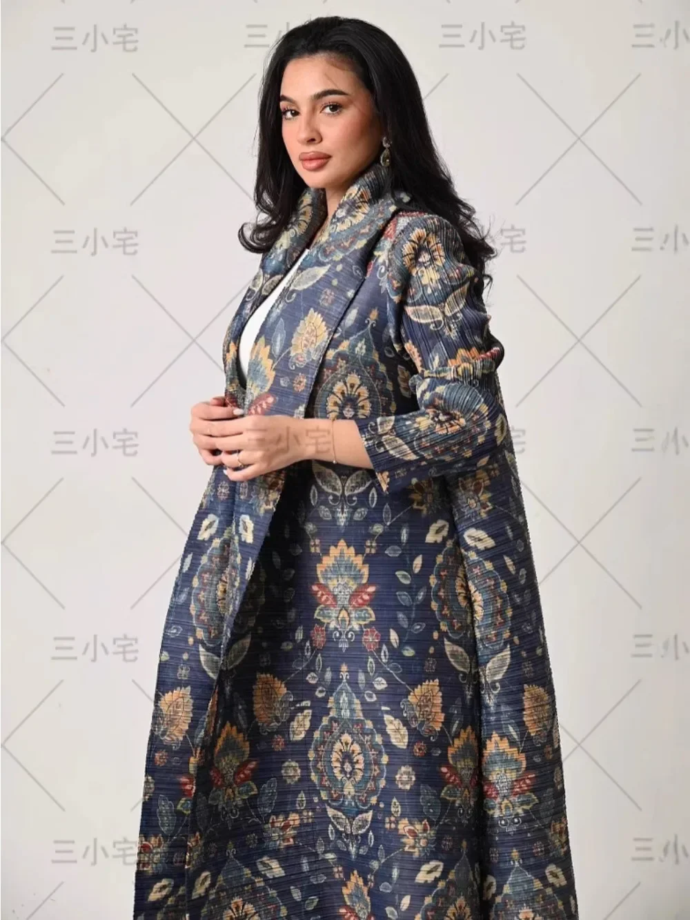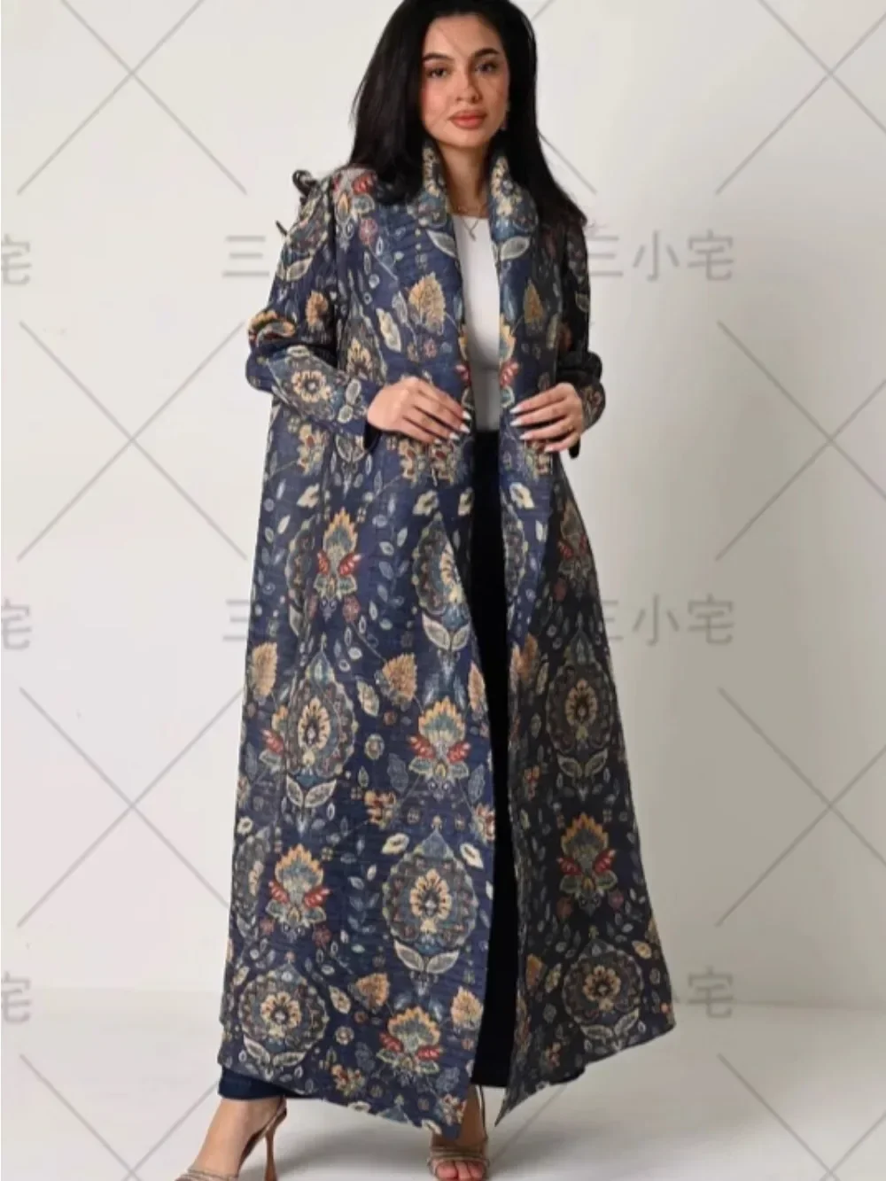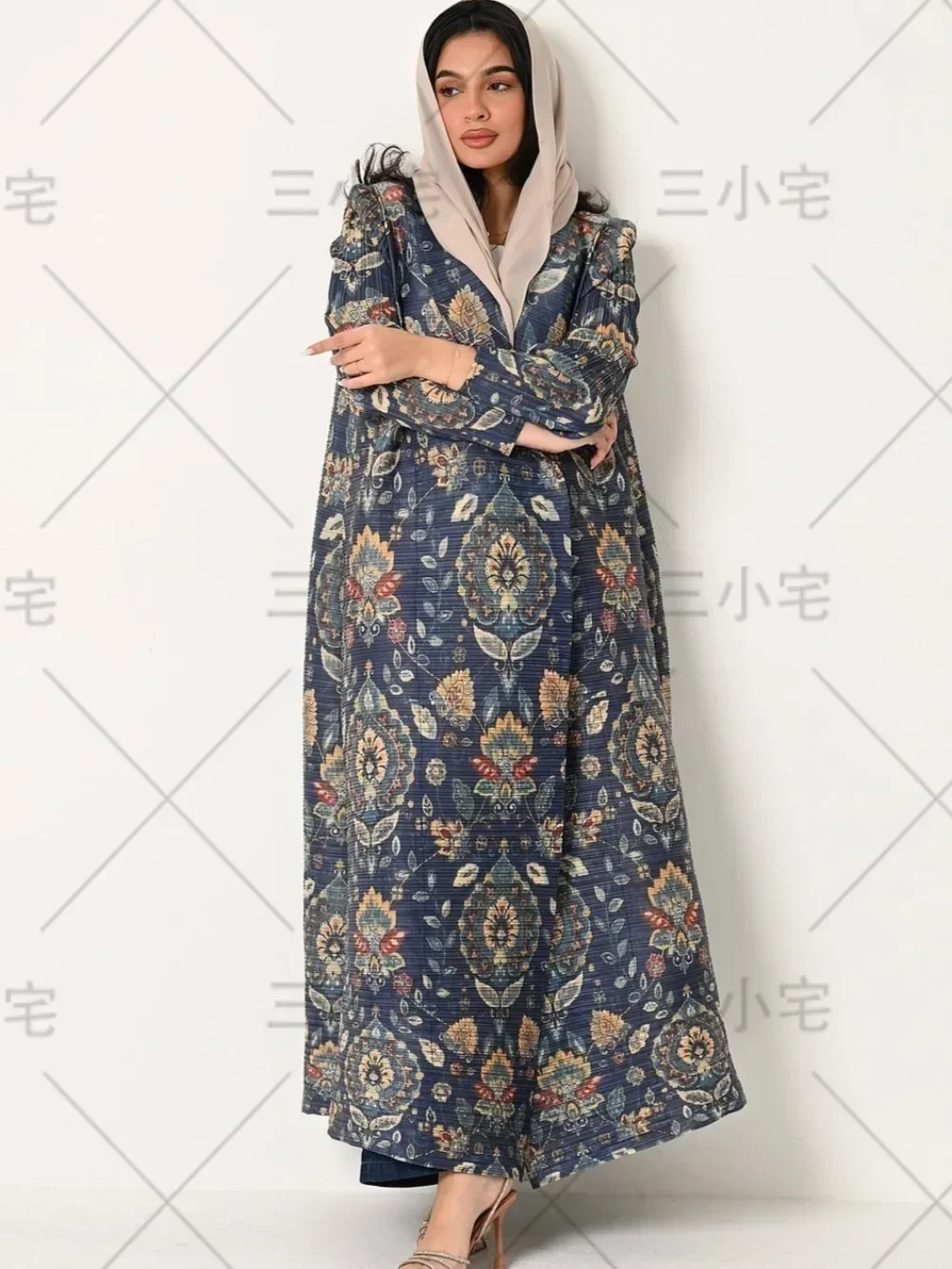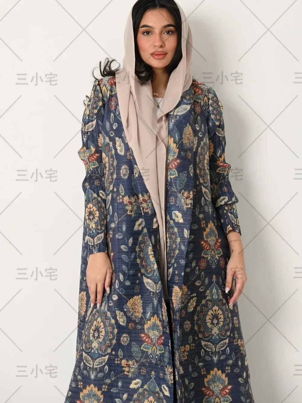 Abaya musulman femmes haute élastique manches chauve-souris plissé Cardigan Trench manteau imprimé col rabattu dubaï Abayas femmes manteau de luxe |