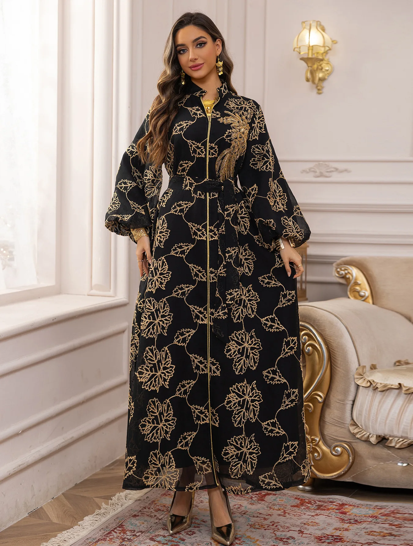 Abaya musulman noir élégant, broderie florale noire, vêtements islamiques polyvalents et modeste avec style culturel arabe pour décontracté de Dubaï |
