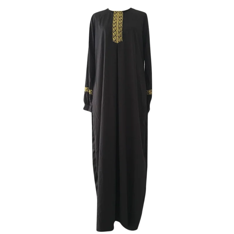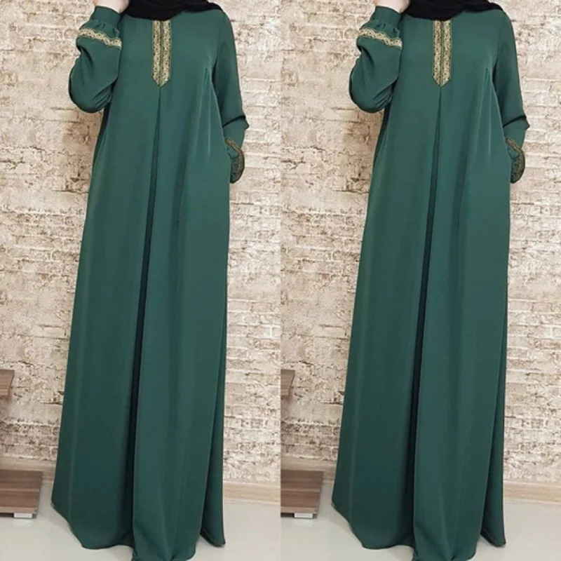 Abaya musulman Style ethnique imprimé Islam Abaya Robe couleur unie ample Robe décontractée Femme Musulman pour l’arabie du moyen-orient