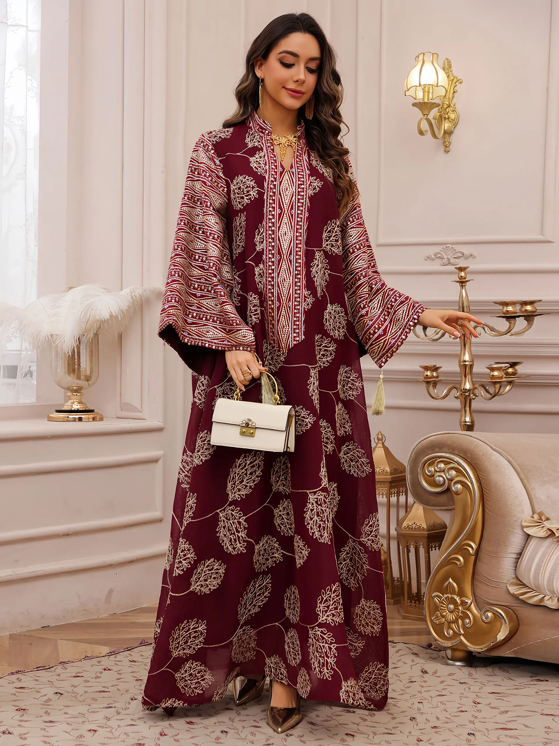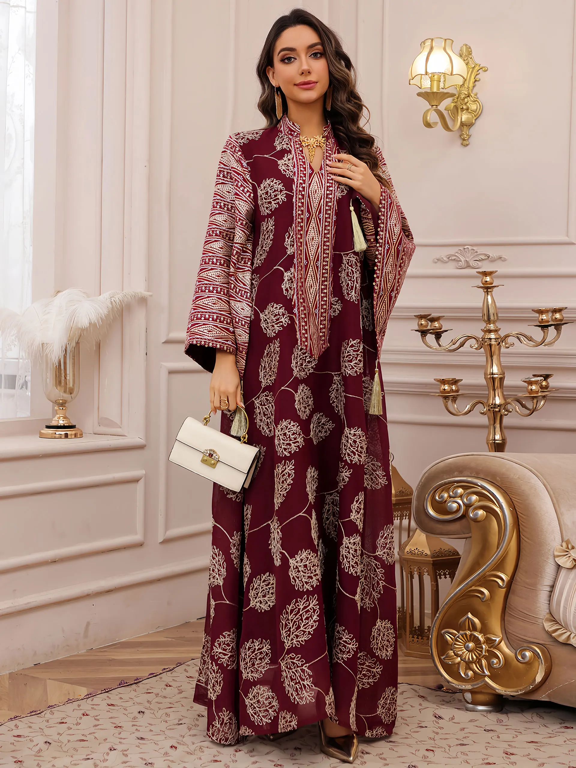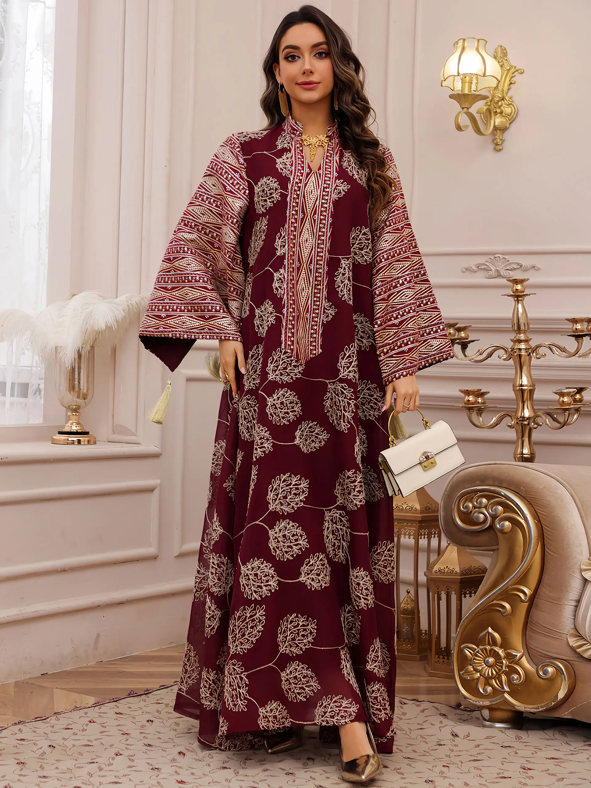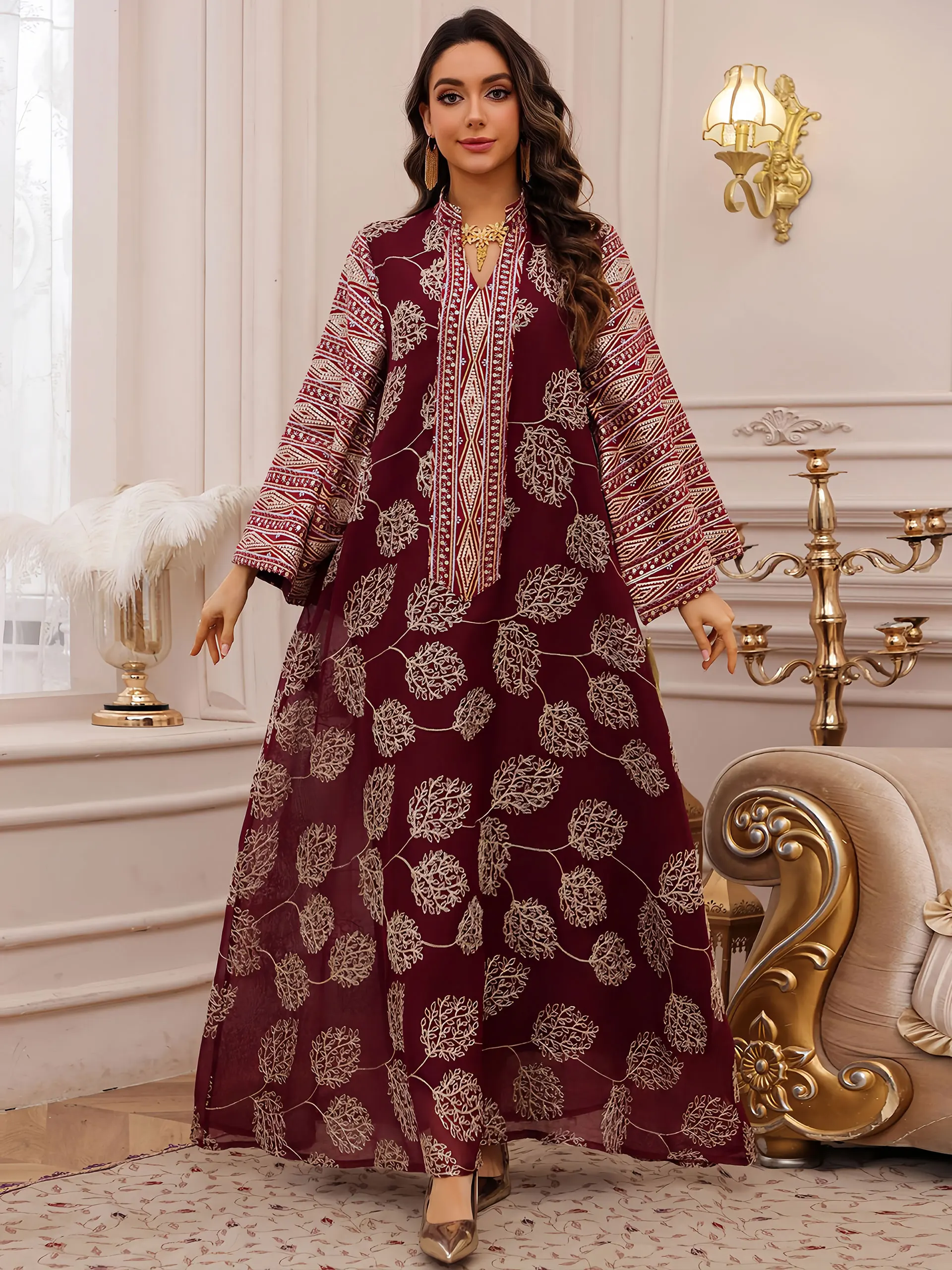 - Produit élégant et de haute qualité, avec une broderie dorée complexe pour une apparence raffinée