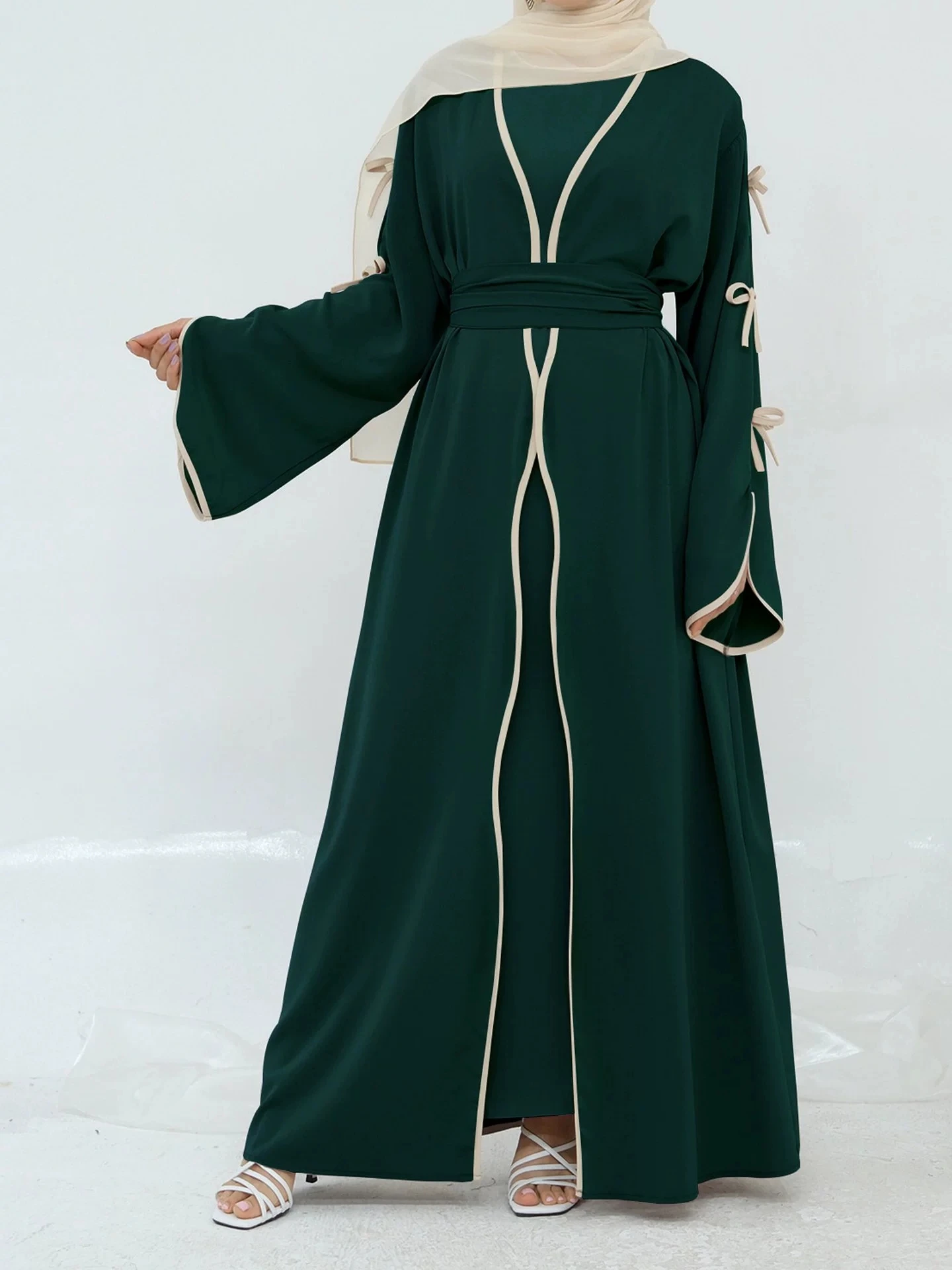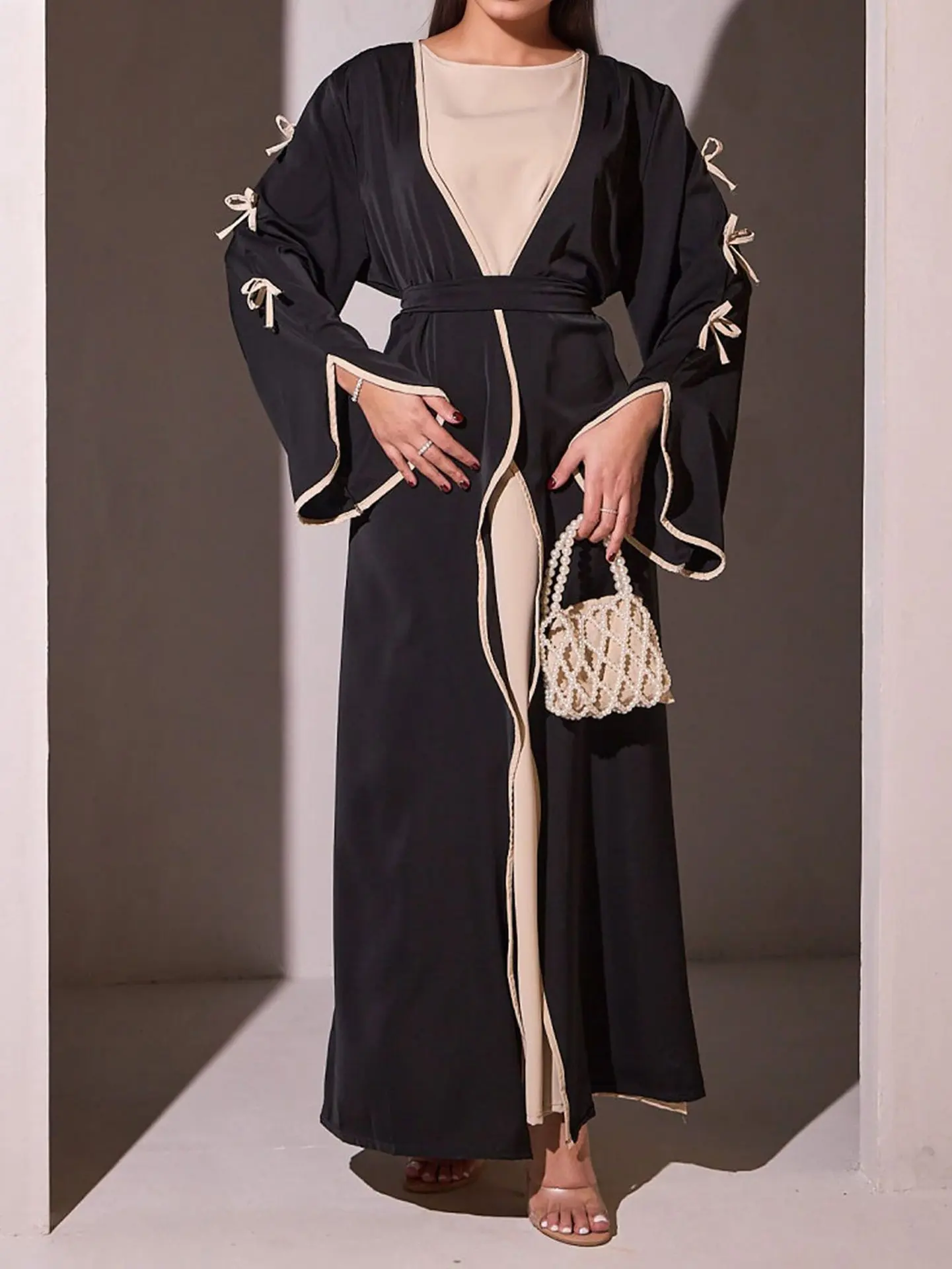 Abaya noir islamique élégant de dubaï pour femmes musulmanes, Design ceinturé avec nœud détaillé, robe longue modeste pour le moyen-orient, nouvelle collection 2025 |