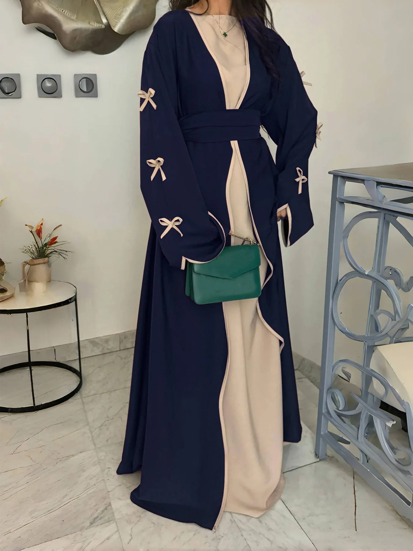 Abaya noir islamique élégant de dubaï pour femmes musulmanes, Design ceinturé avec nœud détaillé, robe longue modeste pour le moyen-orient, nouvelle collection 2025
