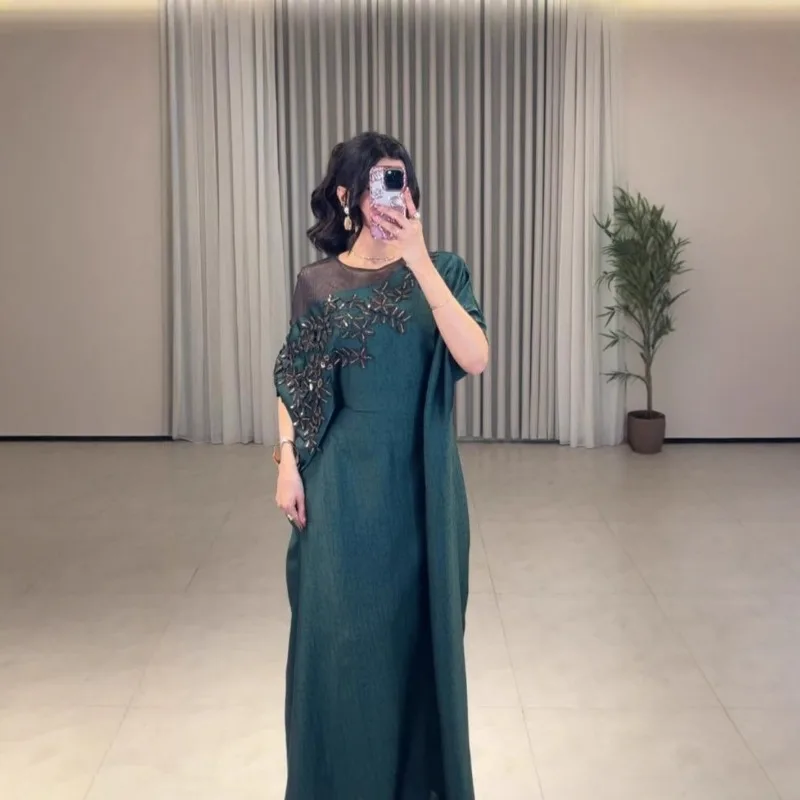 Robes de soirée musulmanes caftan marocain, robe islamique personnalisée, robe trapèze, manches longues, appliques en velours, bleu, Dubaï, arabe, Turquie, Abaya