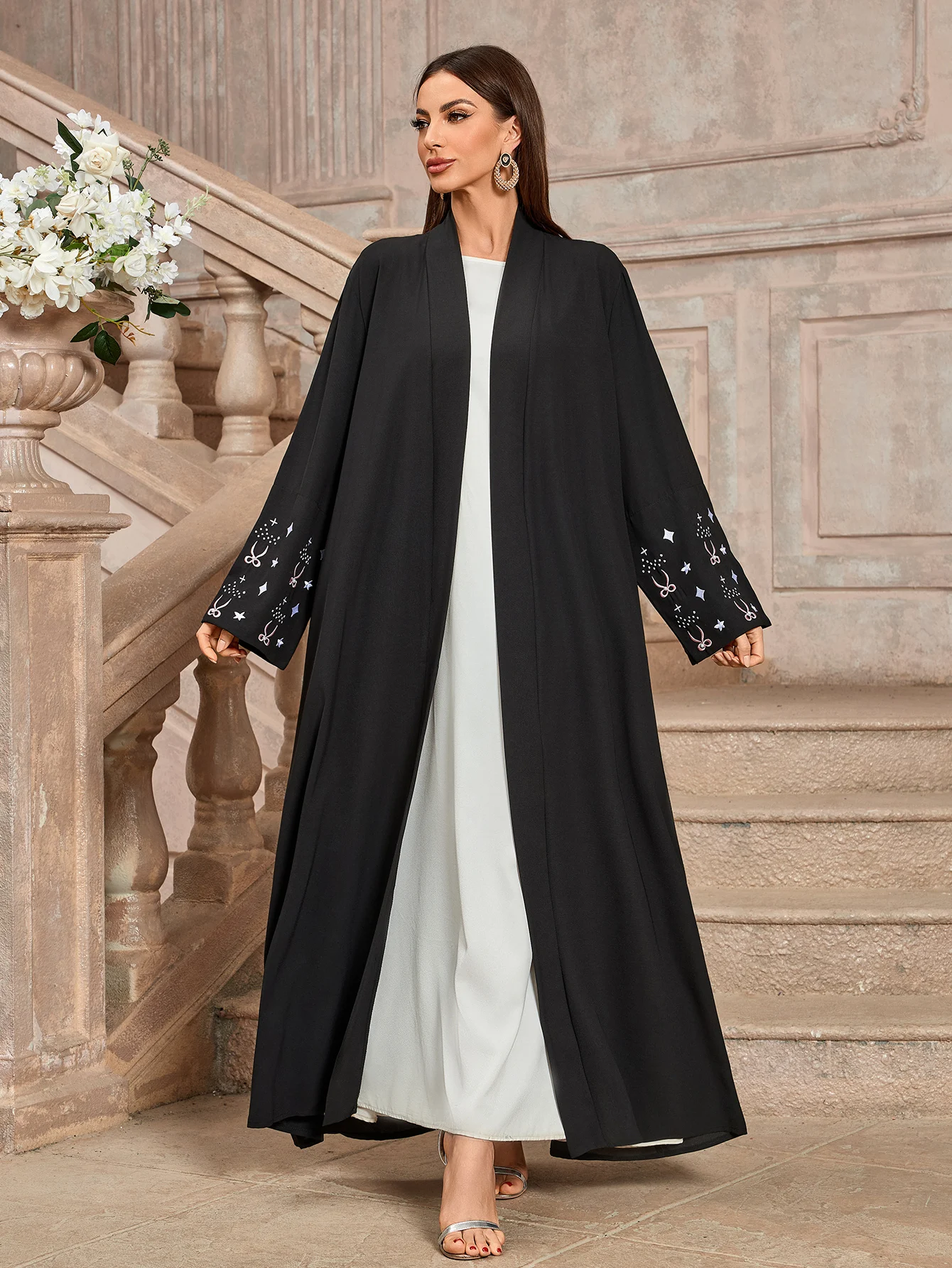 "J'ai été très impressionné par la qualité de cette abaya. Le travail de broderie est magnifique et les perles ajoutent une touche de luxe très élégante. Le tissu est doux et agréable à porter, parfait pour les journées fraîches. La coupe est flatteuse et très modeste, comme je le souhaitais. Le seul bémol est que la taille était un peu grande pour moi, mais il est facile de le faire retoucher. Dans l'ensemble, c'est une très belle pièce que je recommande vivement."