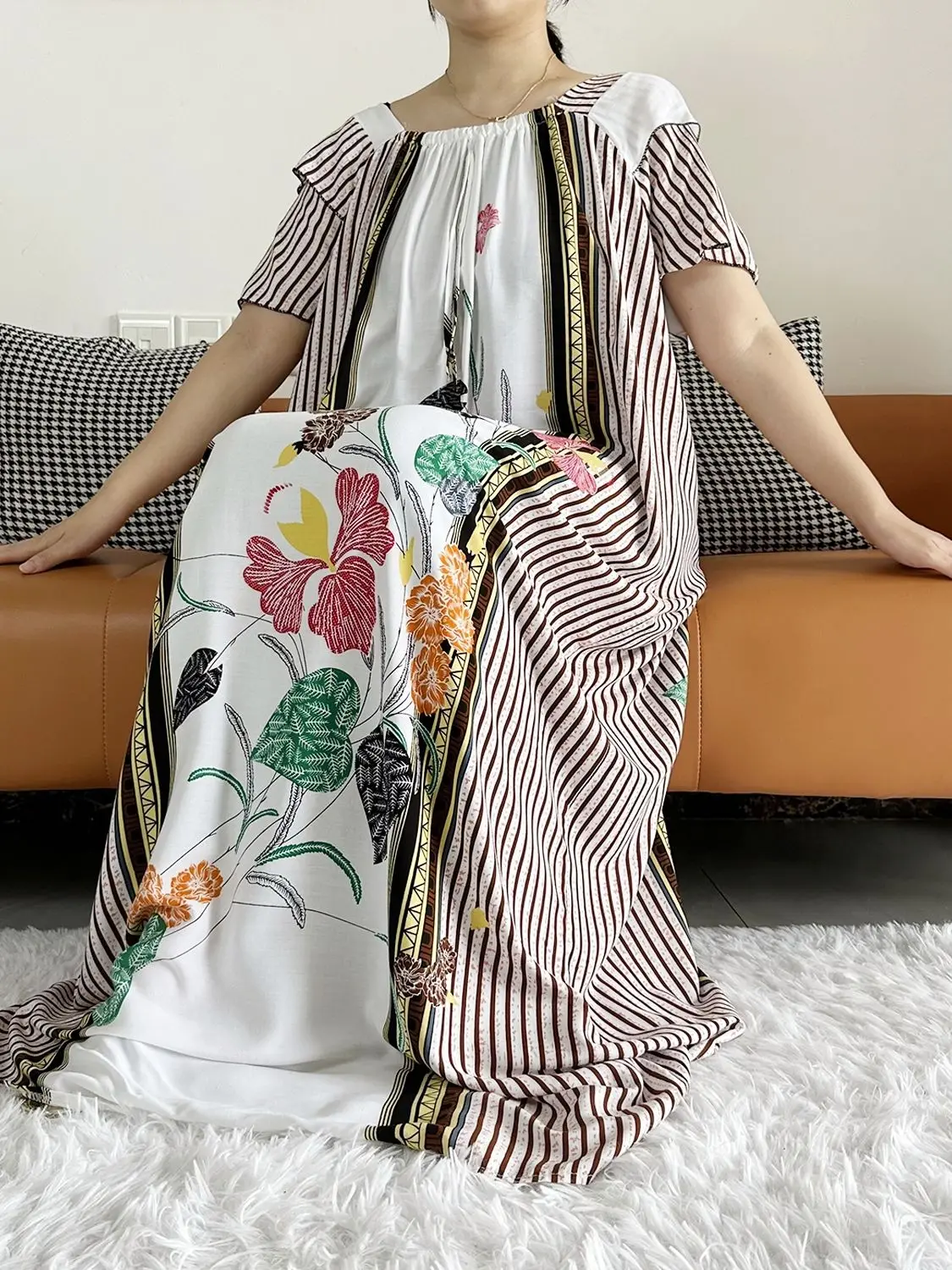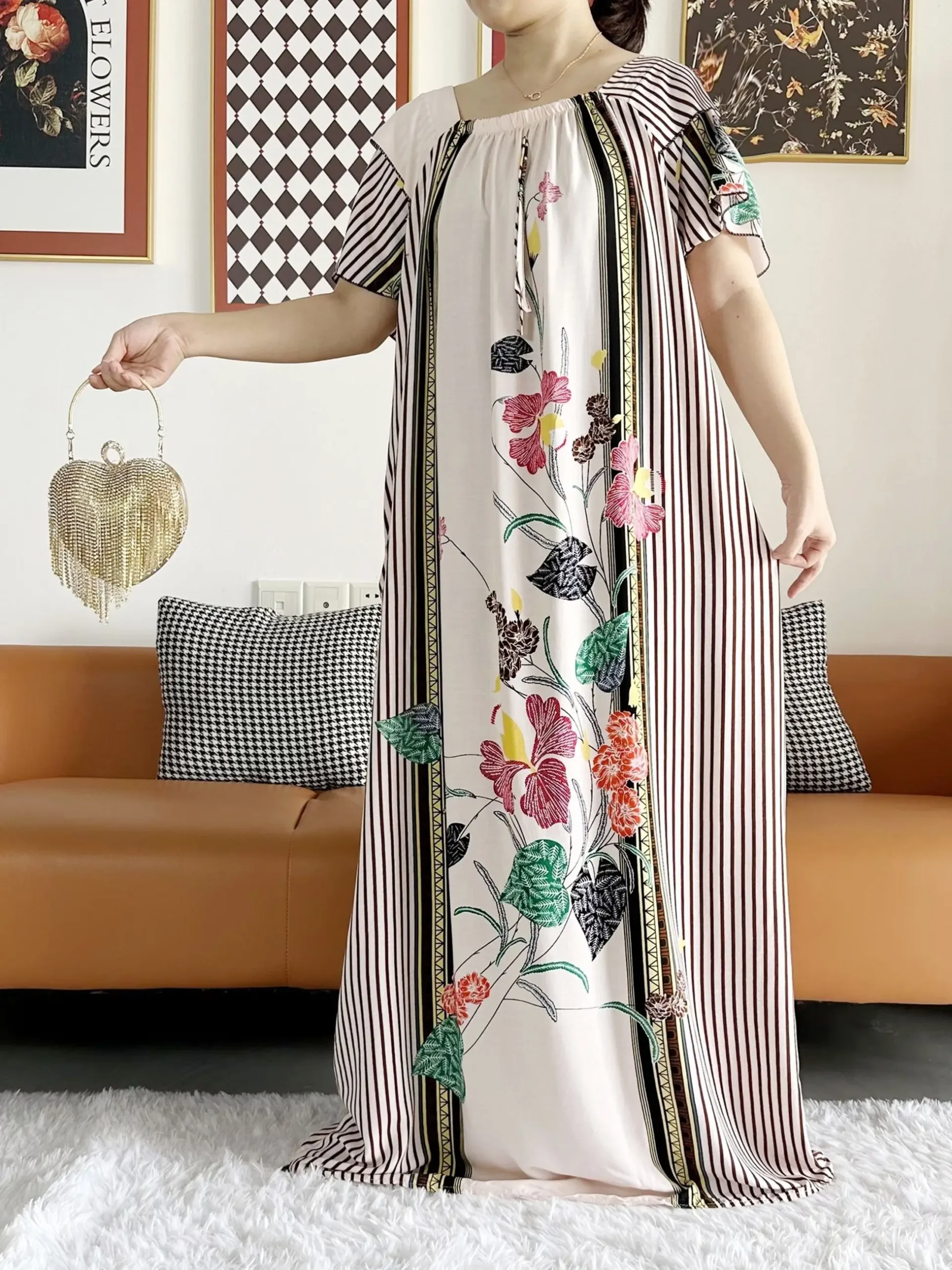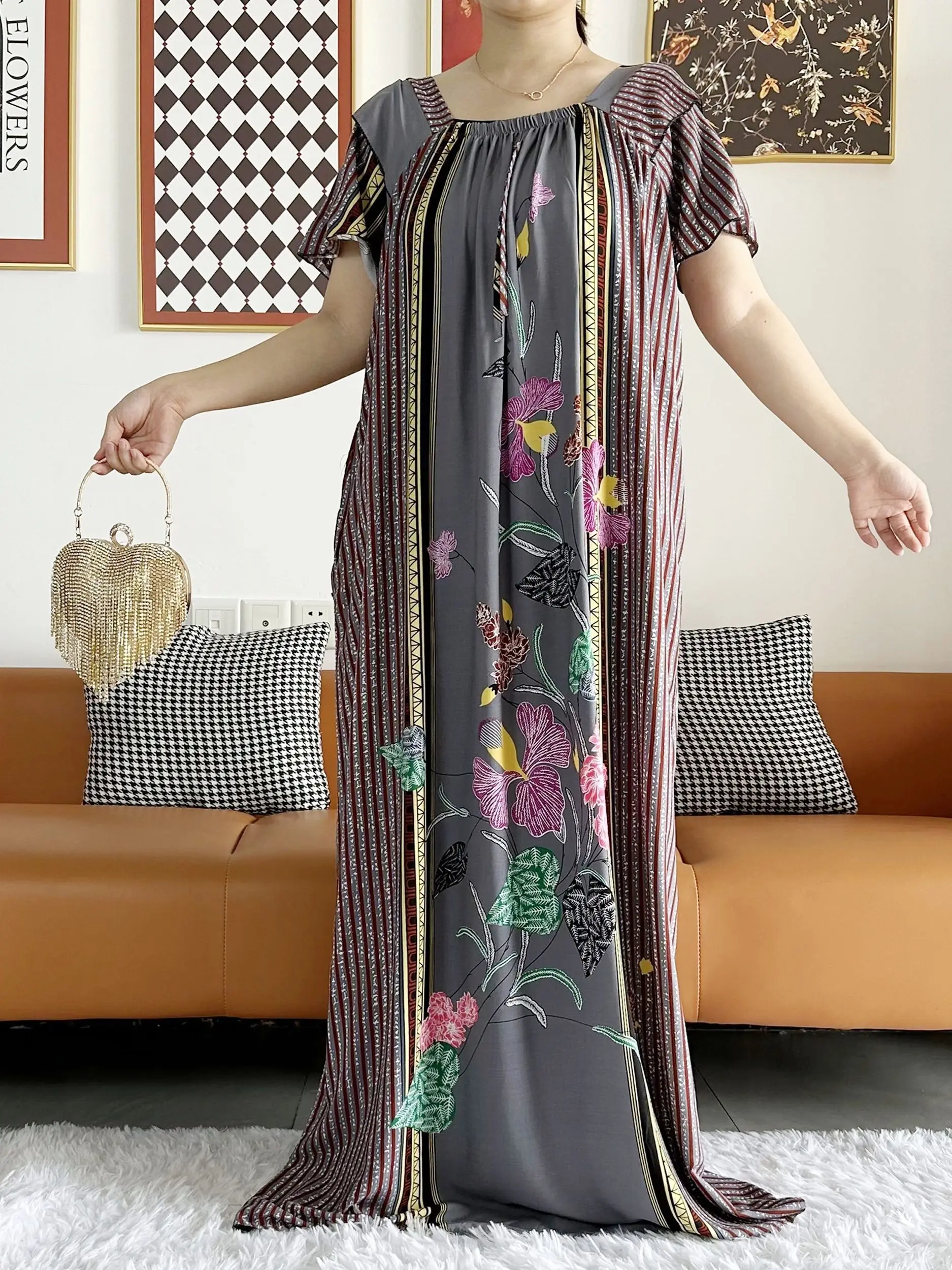 Abaya – robe d'été à manches courtes, col bateau, ample, florale, Boubou, Maxi, vêtements pour femmes africaines, nouvelle collection 2023 |