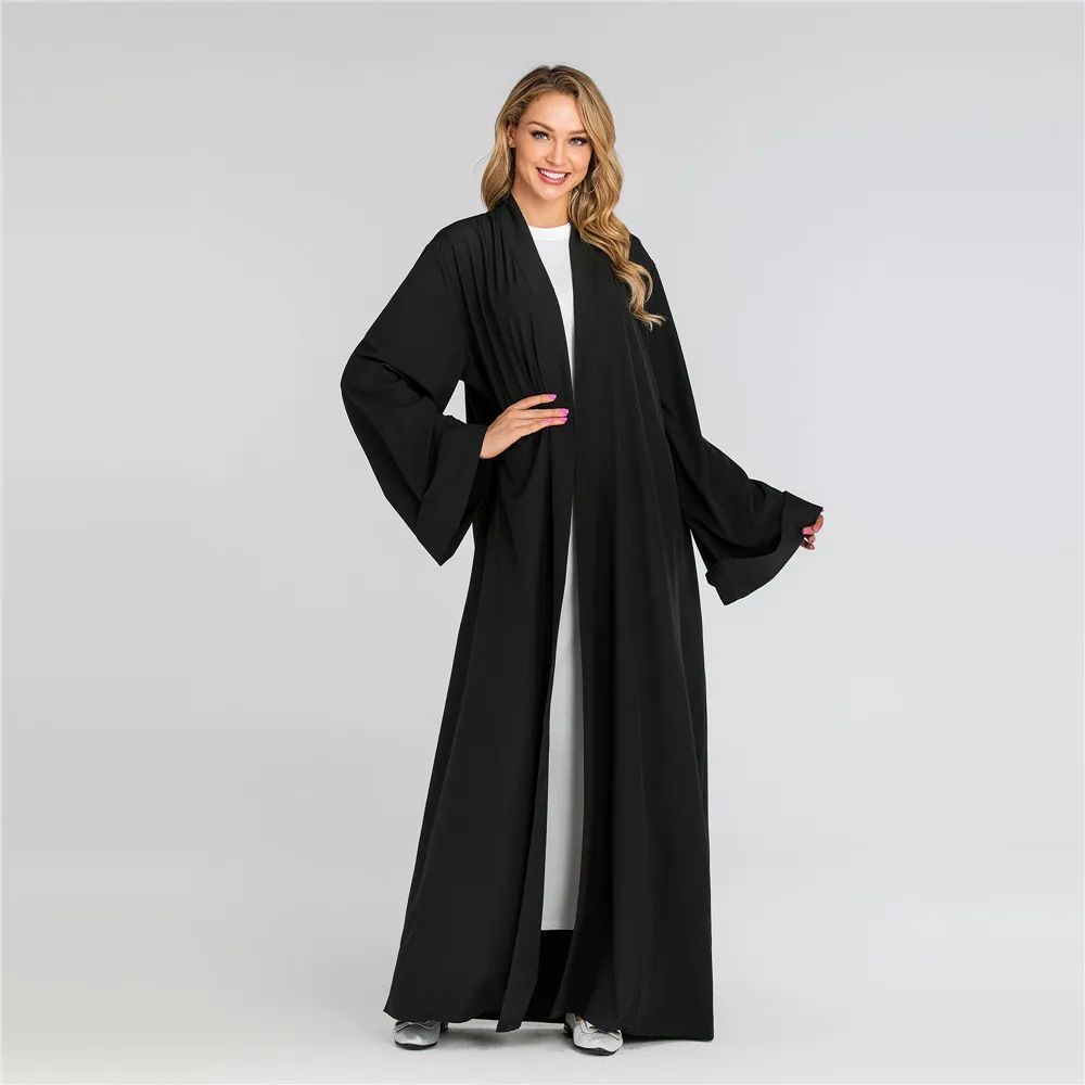 Abaya-Robe longue d’été ouverte pour femmes musulmanes, Turquie, Dubaï, Islam Fashion, Kaftan noir et rouge, Ropa de prière élégant