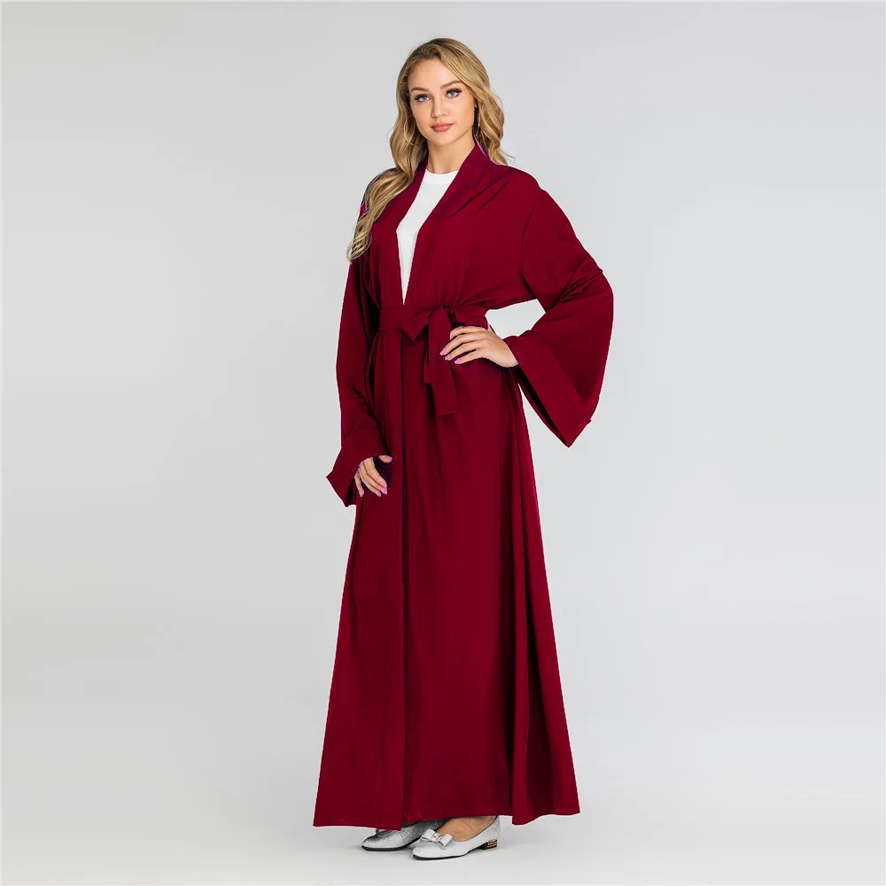 Abaya-Robe longue d'été ouverte pour femmes musulmanes, Turquie, Dubaï, Islam Fashion, Kaftan noir et rouge, Ropa de prière élégant |